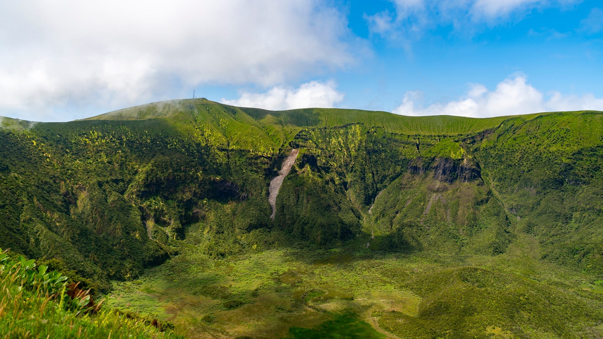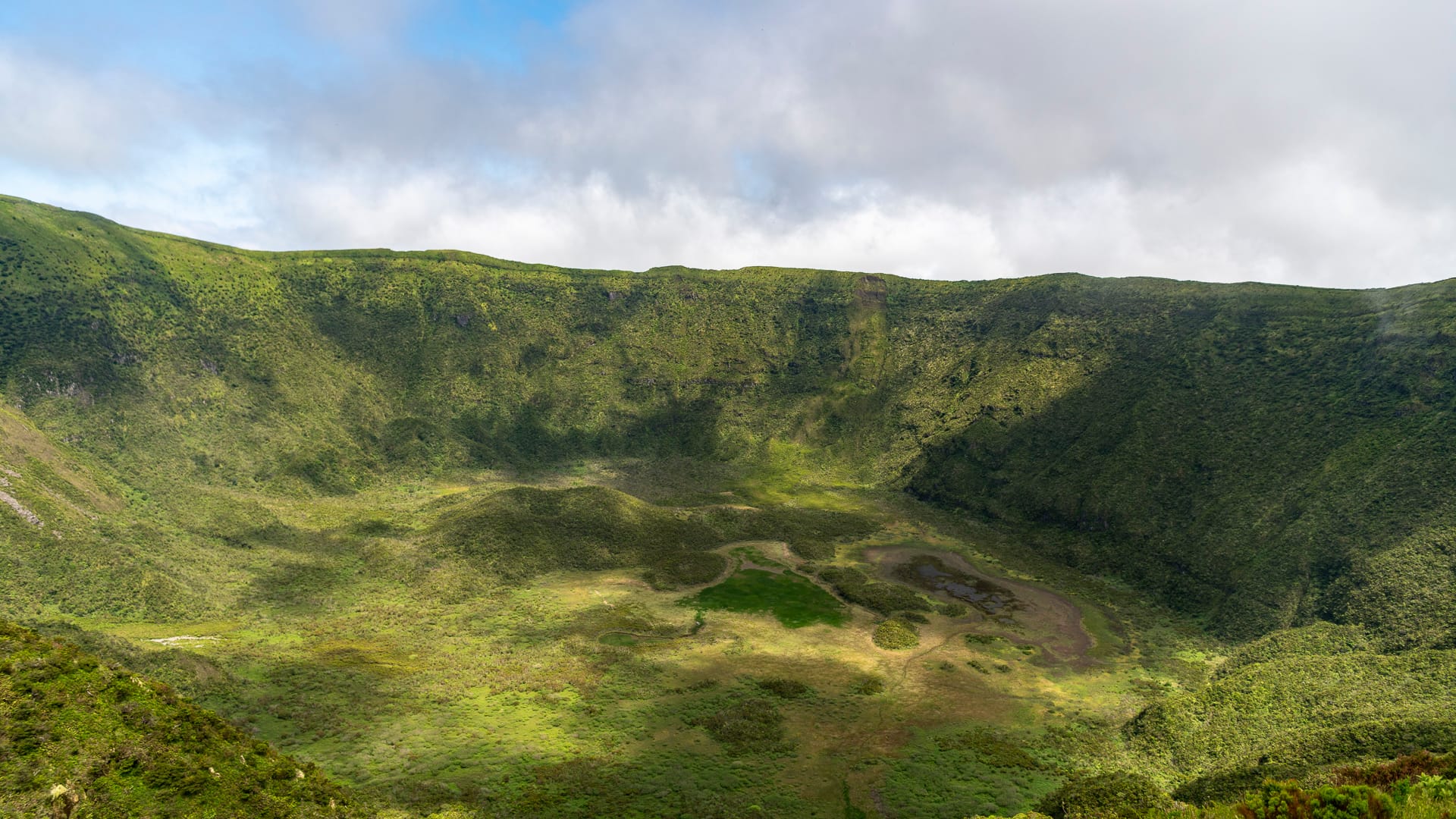 The caldeira volcano is the highest point on Faial and is around 2 KM in diameter with a circular form and a hiking path around the rim. The bottom of the caldera is about 400 meters down from the rim. The path is not an easy one, with some difficult-to-navigate spots, and is only about 2 meters wide in parts, with a steep drop-off on both sides. The walk takes between 2 and 3 hours, and I was tired afterward and knew that I’d be sore on the morrow.