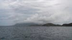 The winds were sporty, and we did over 8 knots most of the day. Towards late afternoon, the overcast skies darkened, and we approached a line of thunderstorms and squalls. We put 2 reefs in the main and the jib before the winds hit us. It turned into sustained 30+ knots, and Lincoln decided to heave to. Cyrilla hove to very nicely indeed, and we lay ahull for two hours, doing between 1 and 3 knots downwind in very stable conditions. The winds howled, at times gusting to over 40 knots, and the rain came down. The closest lightning was less than 1 second away.