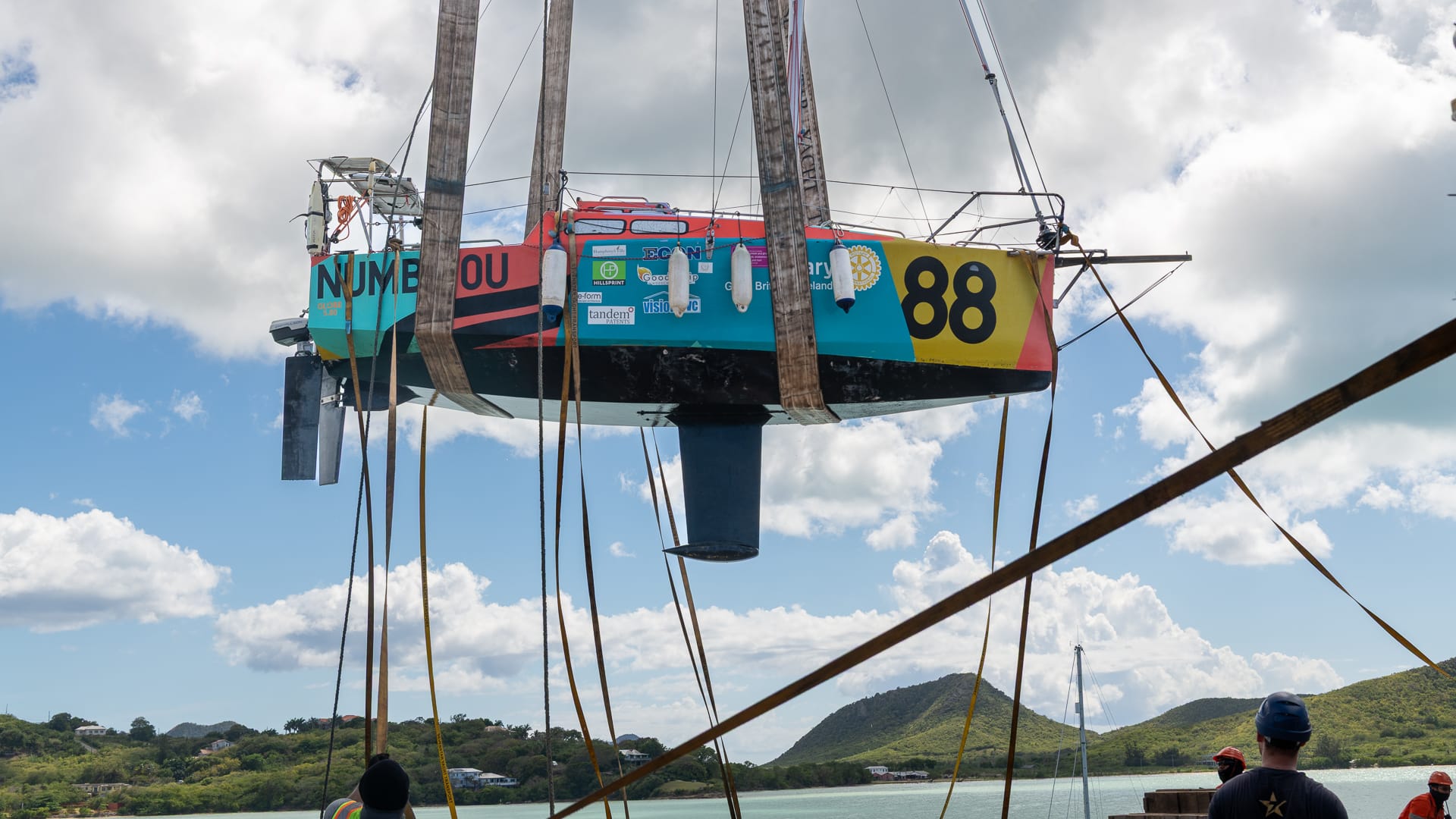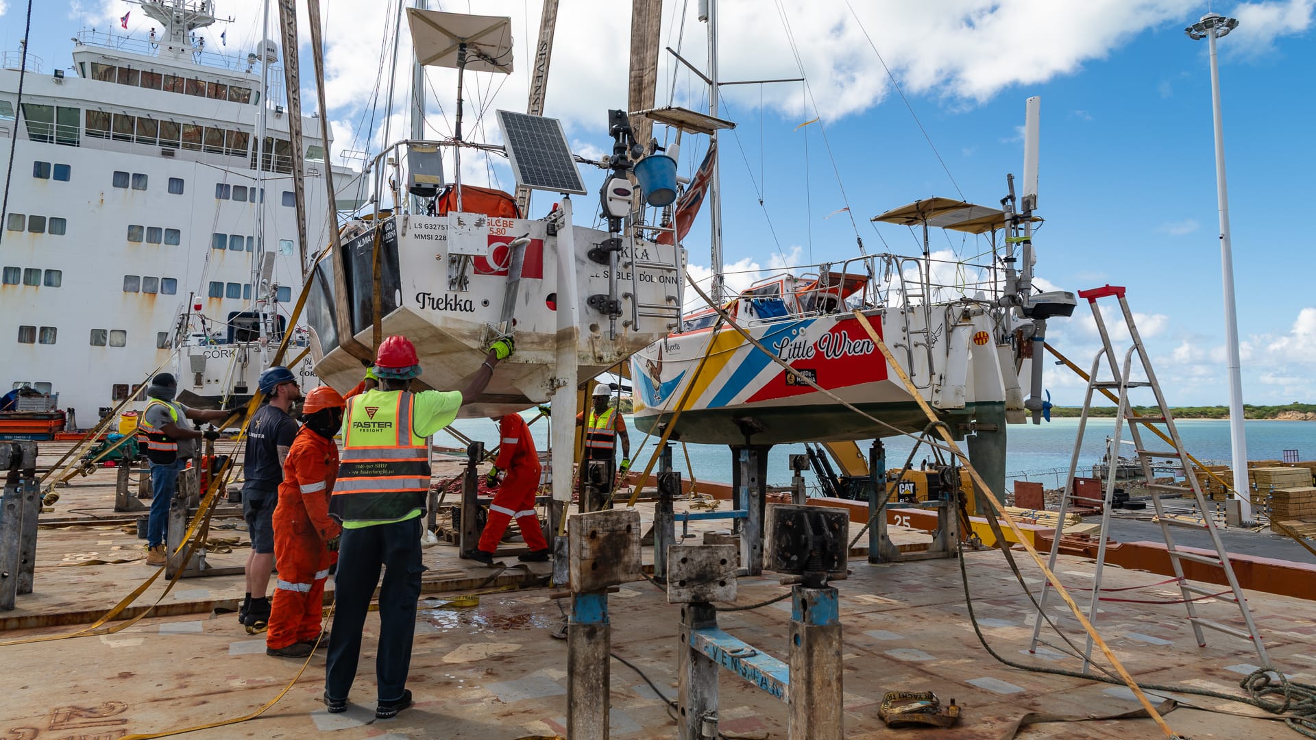 Mike and I left Jolly Harbor on Trekka at 08:00 in the morning and proceeded under both sail and small outboard towards St. Johns. The cargo vessel Dolfijngracht was already at the dock, and we were scheduled for a 10:00 am haul.