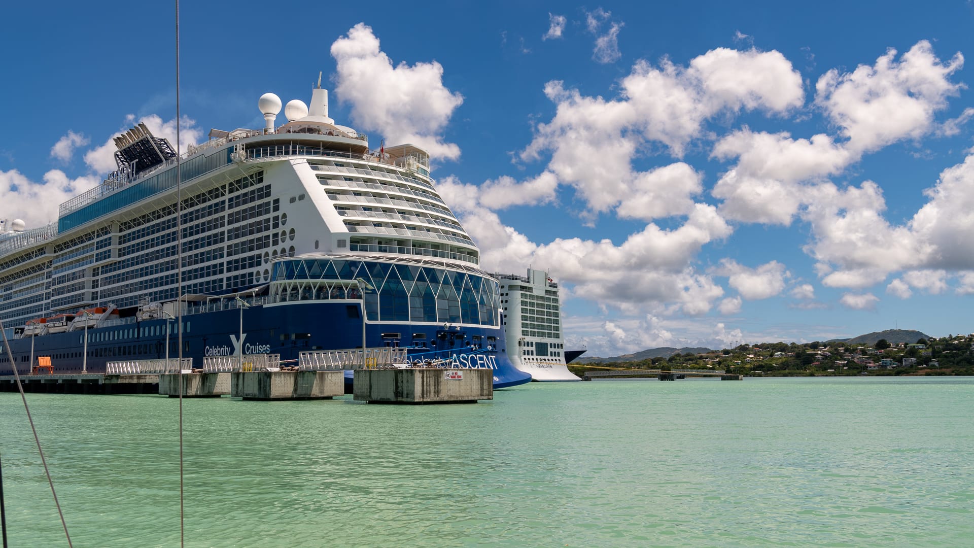 When we sailed into the large St. Johns harbor, we saw that our vessel still had the yellow Q-Flag up, and Mike got a text message that there would be “delays”. In the end, we tied up to a commercial vessel in the far corner of the harbor, close to the 3 cruise ships that were docked for the day.