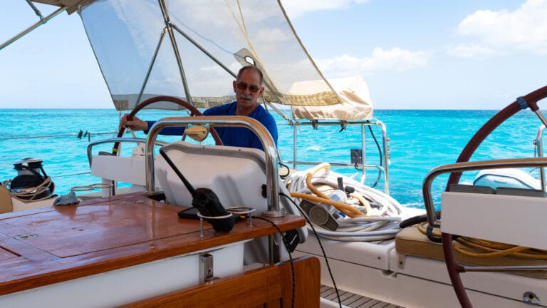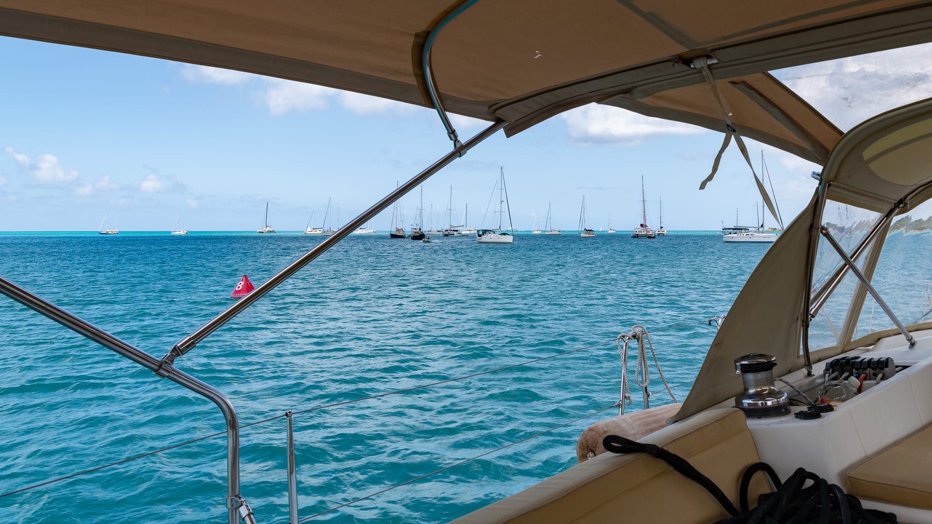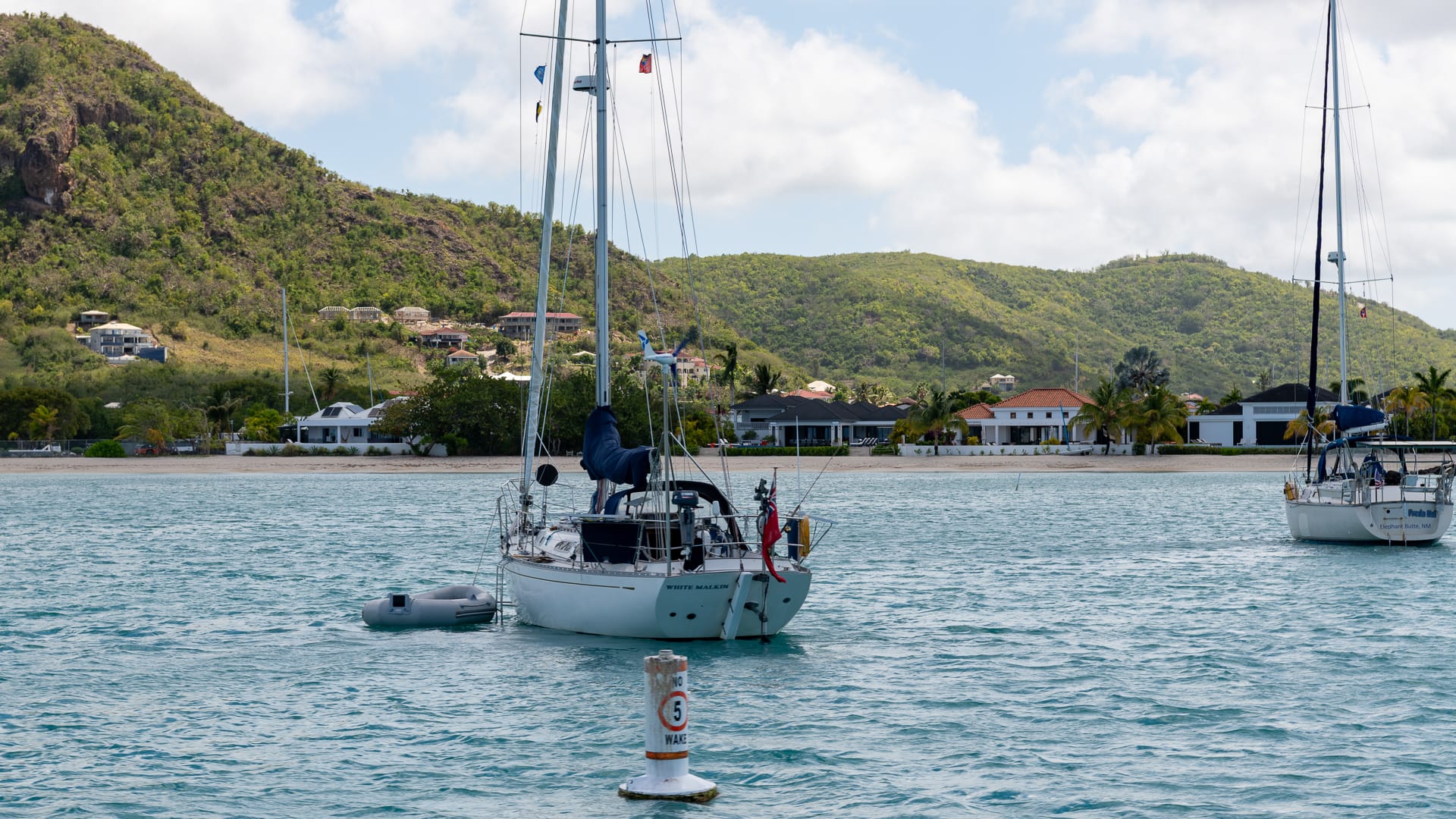 Zed and I then grabbed a taxi and drove all the way back to Jolly Harbour. Zed got some “groceries” while I did the paperwork with Dream Yacht Charter to get our committee vessel, Cool Runnings. We left the dock around 17:00 and motored towards English Harbour, knowing that we wouldn’t make it back in before dark. This is a bit of a problem, as the charter contract prohibits nighttime activity.