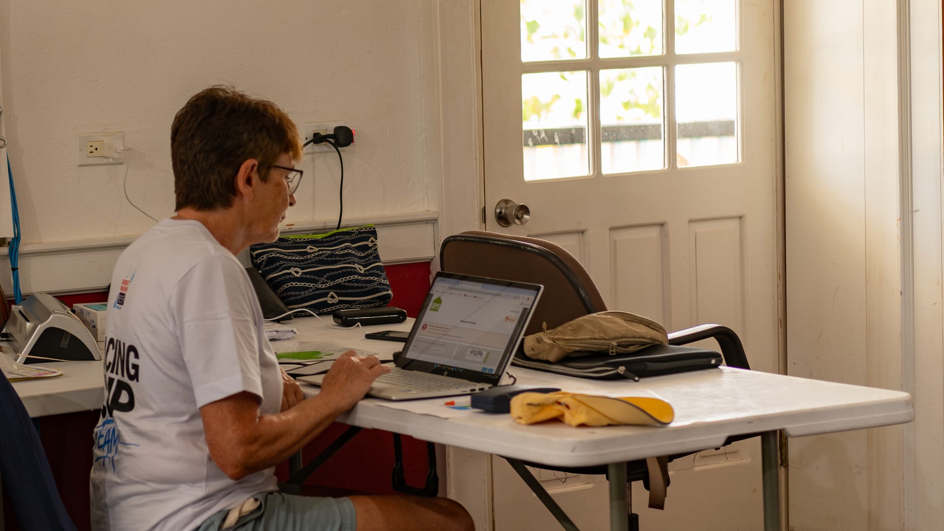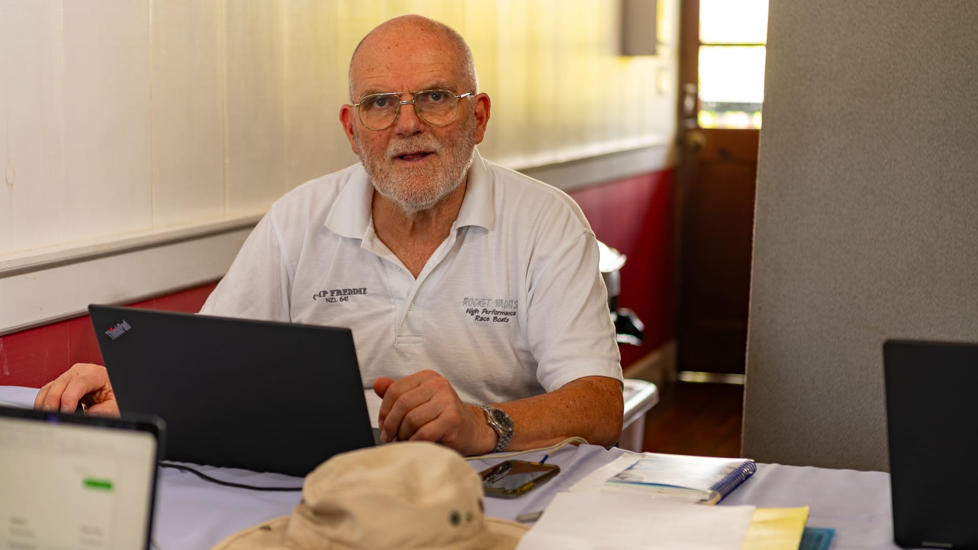 Today, we prepared the committee vessel for the races, with Zed and the others attaching the plastic tubes to hold the flags/signals. We tested the horns and generally got our committee vessel ready.