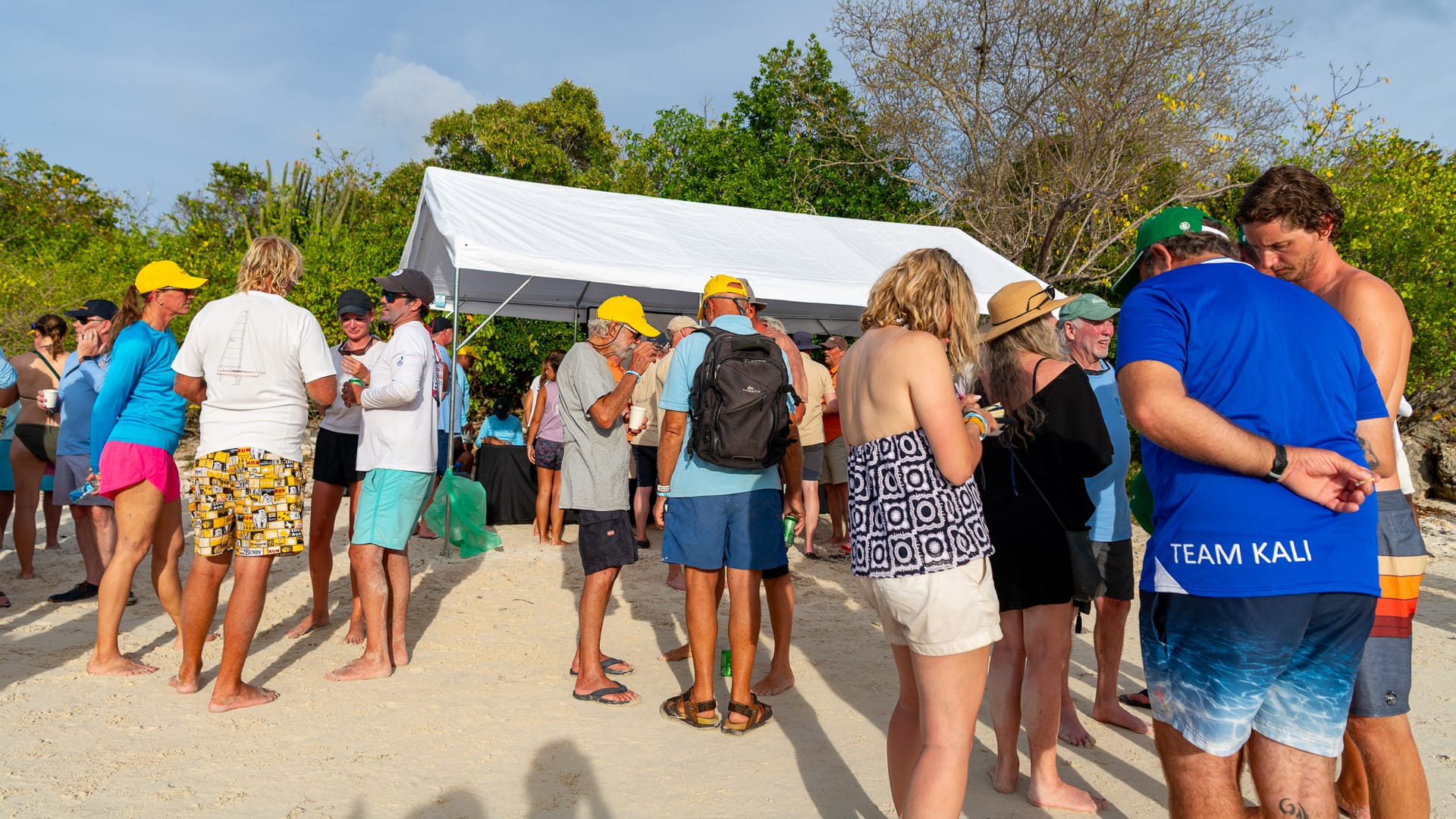 Instead of anchoring in the main anchorage with all the racers, we slipped around the corner and found a great spot in my favorite little bay. Once safely tethered to the sandy bottom, we took the dinghy around and joined the festivities ashore.
