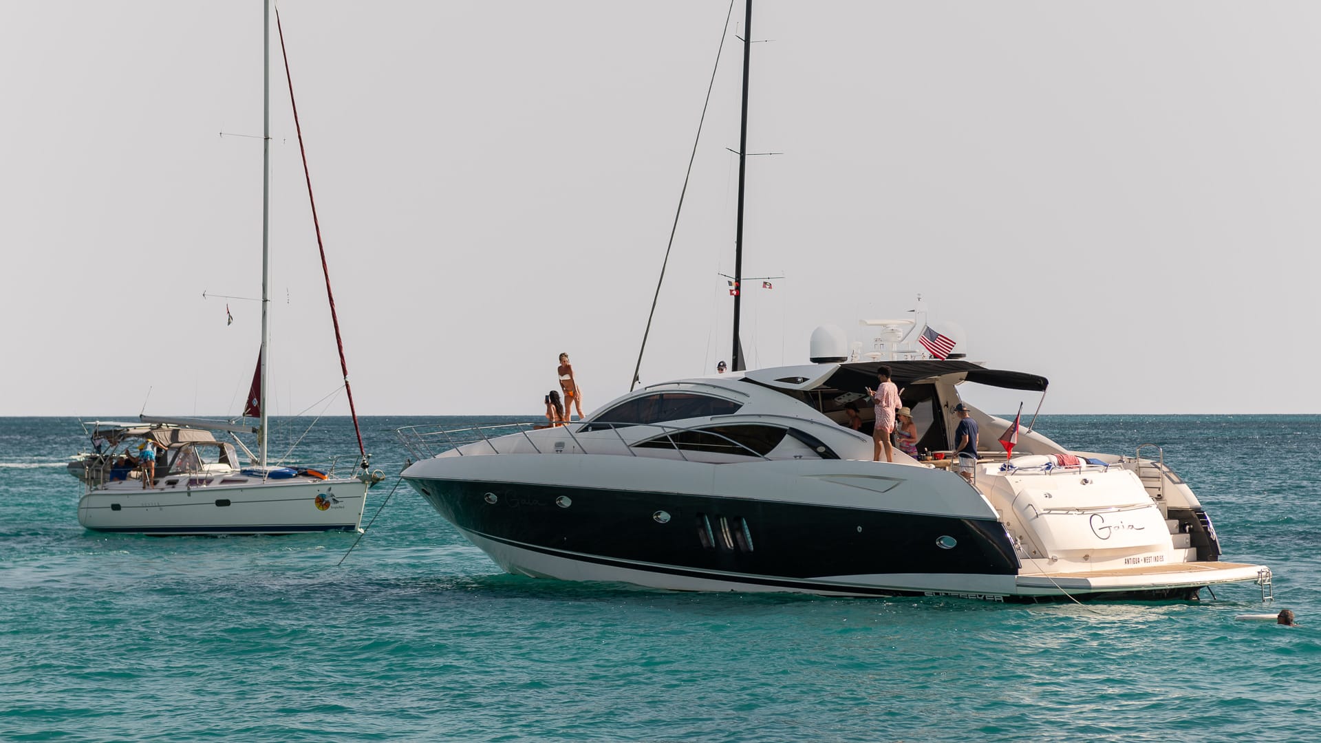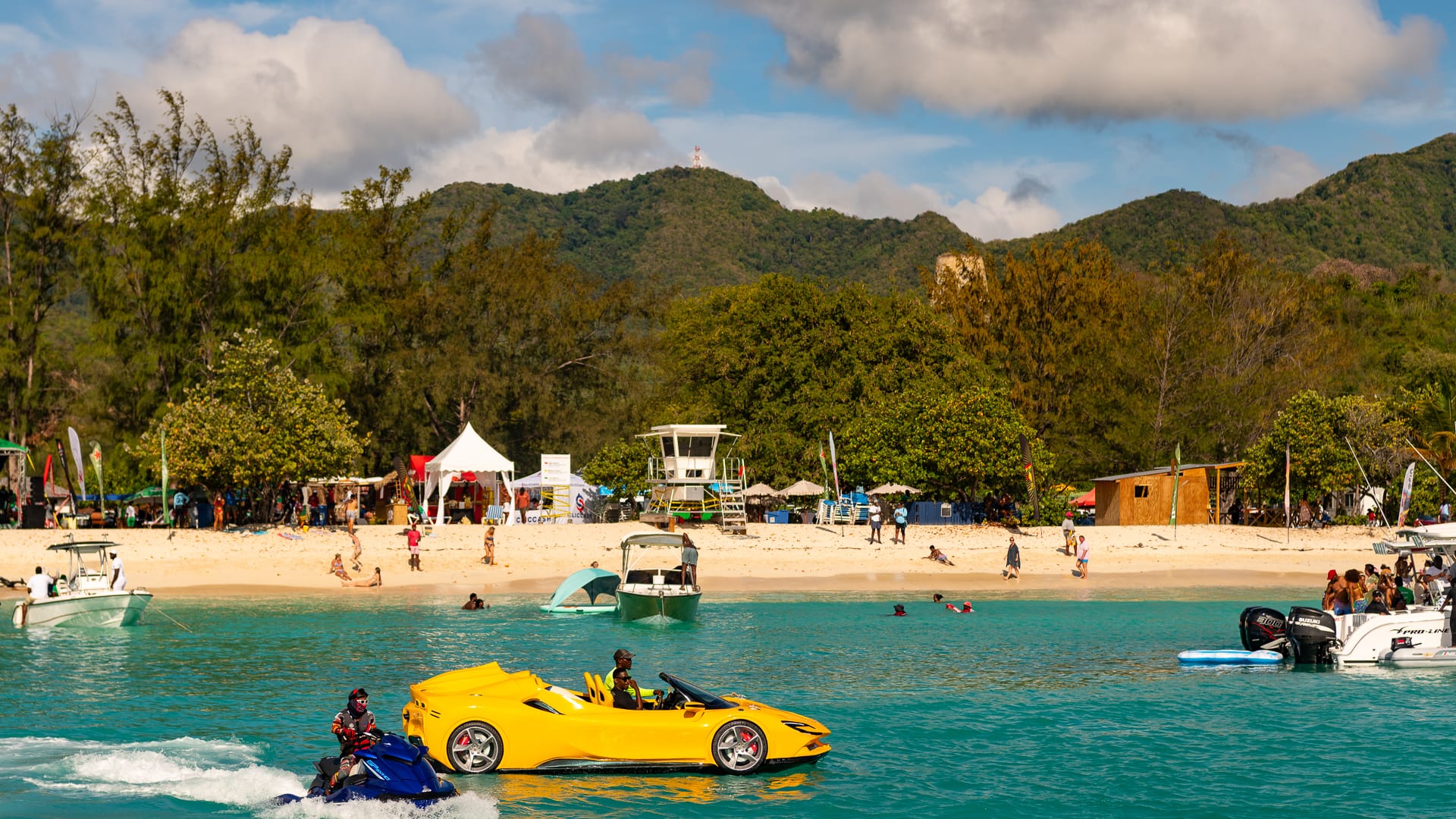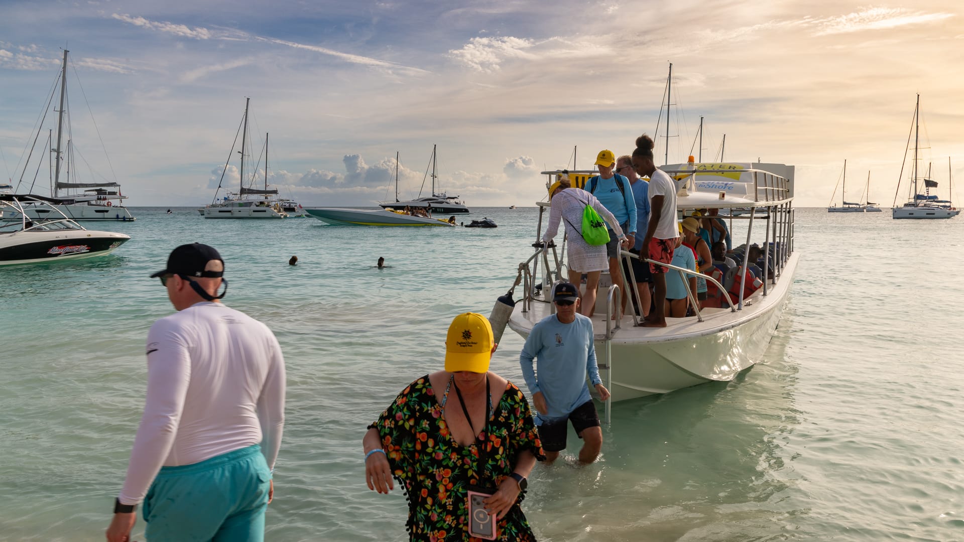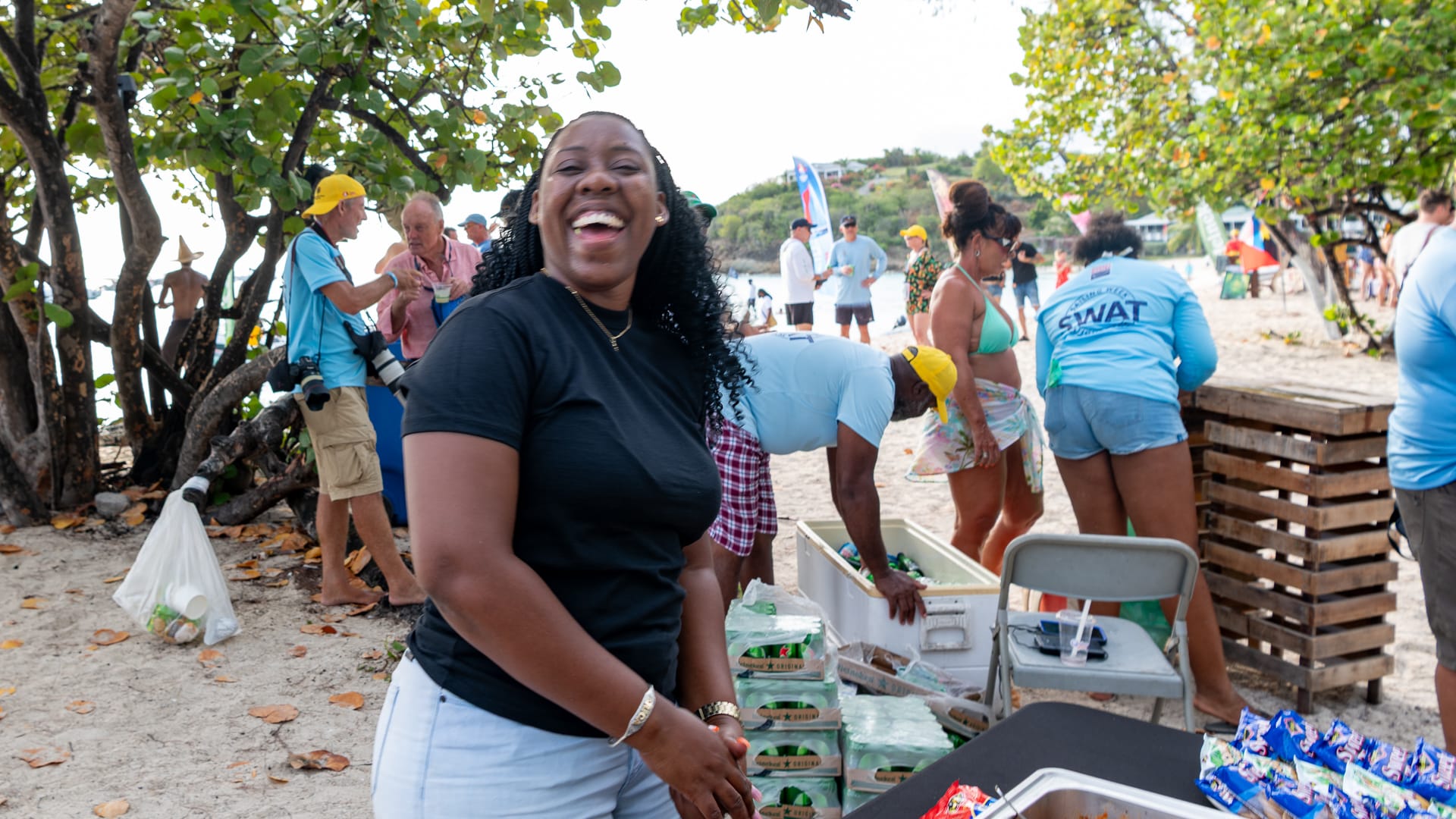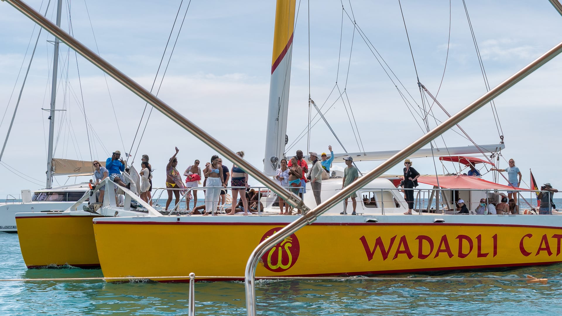 The winds were very favorable, and I was able to take a shortcut between the mainland and Boon Reef. When I arrived at Ffryes beach just before noon, there was already a lot going on ashore, but the music hadn’t started, and the anchorage was still mostly empty.