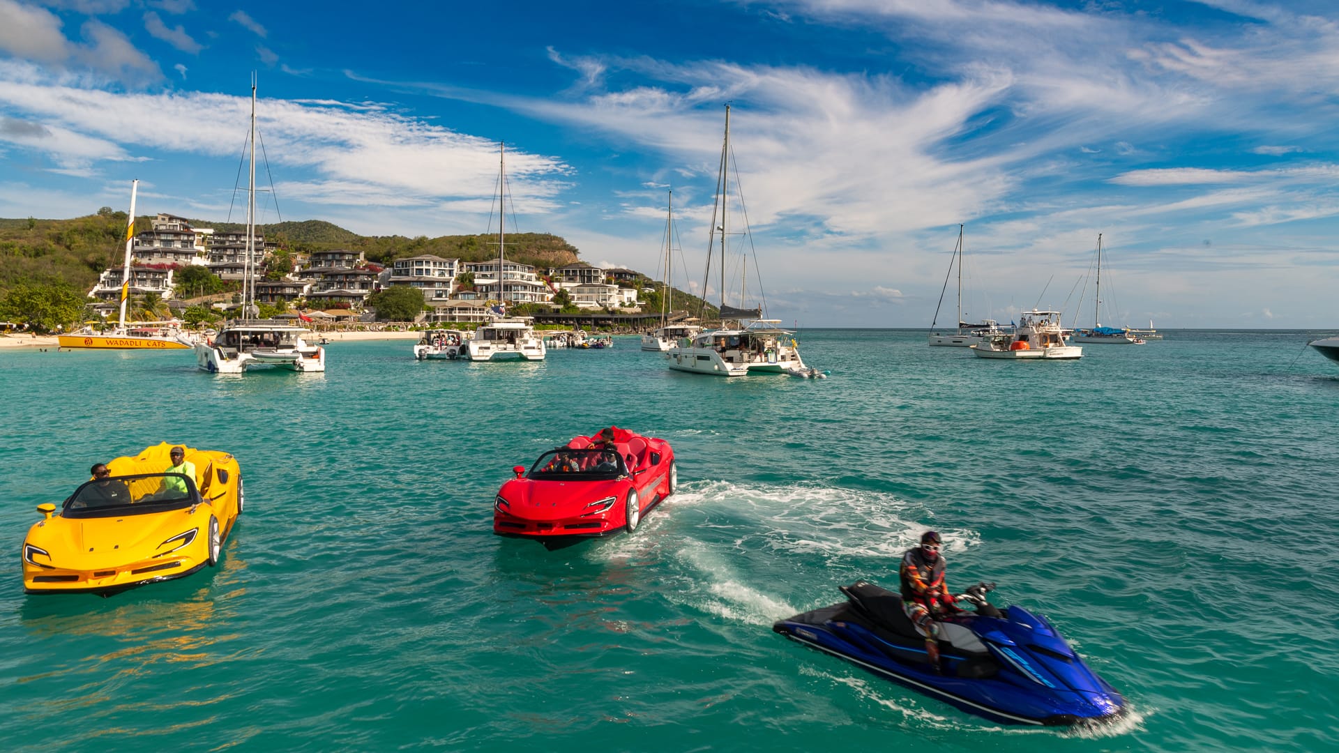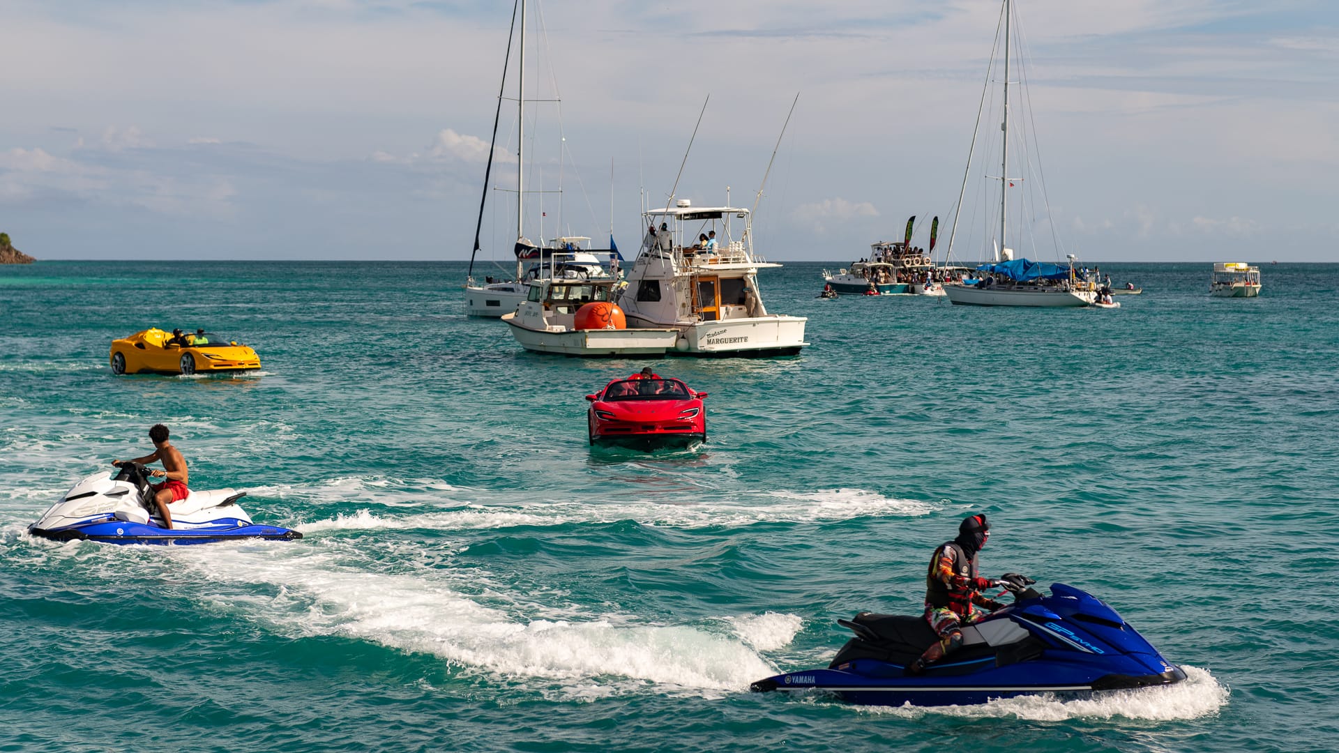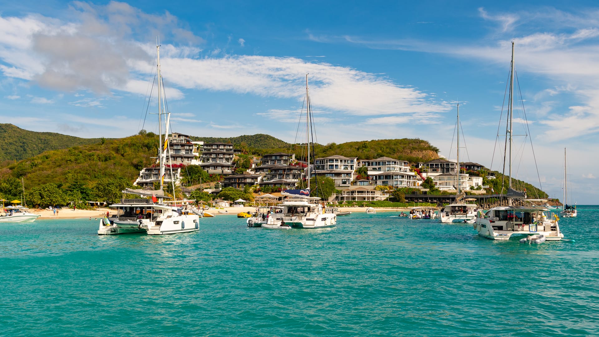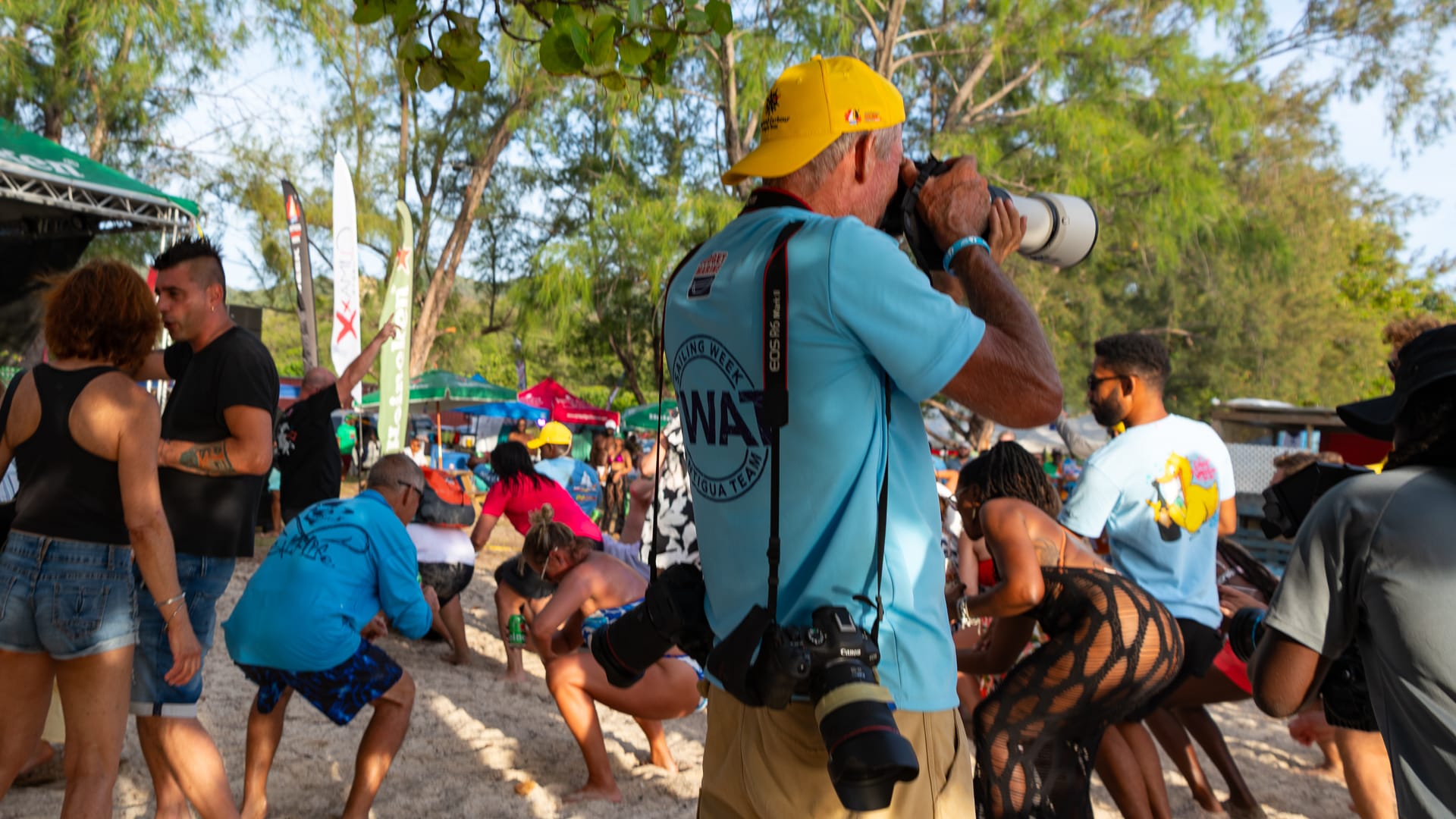 The winds were very favorable, and I was able to take a shortcut between the mainland and Boon Reef. When I arrived at Ffryes beach just before noon, there was already a lot going on ashore, but the music hadn’t started, and the anchorage was still mostly empty.