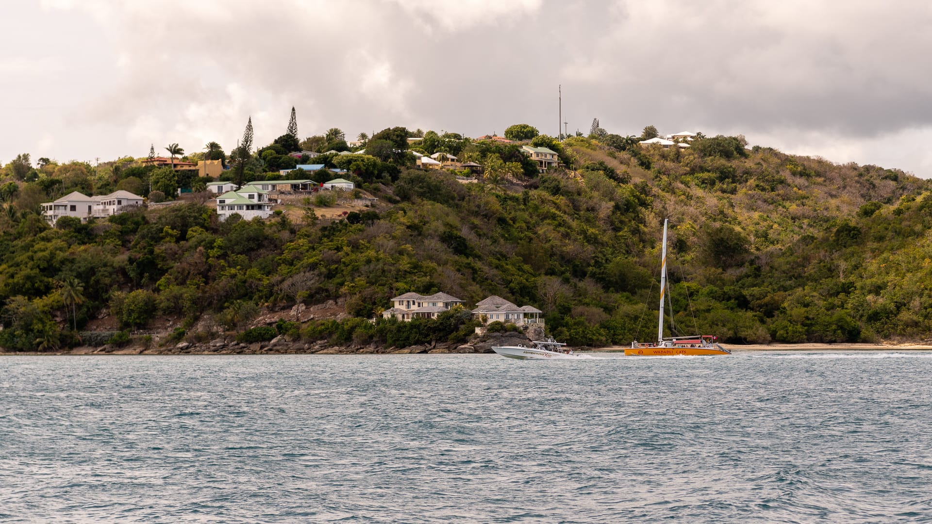 I had to sail alone today. I dropped both Meredith and Tim off at the ferry dock close to the airport. Tim had an appointment aboard the helicopter, and Meredith was slated to work aboard a Wadadli Cat with several members of the press.