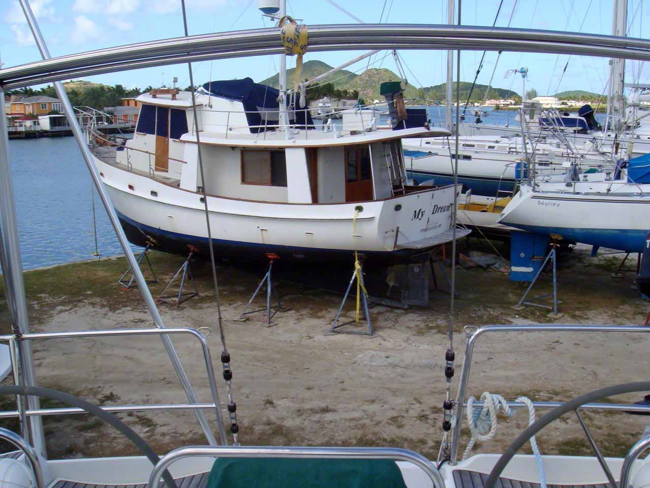 Due to project time line changes I realized that December was the perfect time to take a break and it took me less than two hours to plan the vacation, get permission from my project managers at work and book my flights! This is just an interim trip and I still wish to go through the Panama canal sometime in 2010. Fortunately for me the prices for tickets and accommodation are not yet at their height so I managed to get a good deal on both, flying on Condor Airlines and staying at the Jolly Harbour Beach Resort right next to the boat yard. The hotel is an all-inclusive resort and I’m not the type to use that to its full extent and will probably opt for a more conventional hotel next time around. as I’d rather pay for a good meal than get unlimited amounts of average buffet. The hotel does have the distinct advantage that it is only a couple of hundred yards walk to the marina and boat yard, though and the air-conditioning was working well.