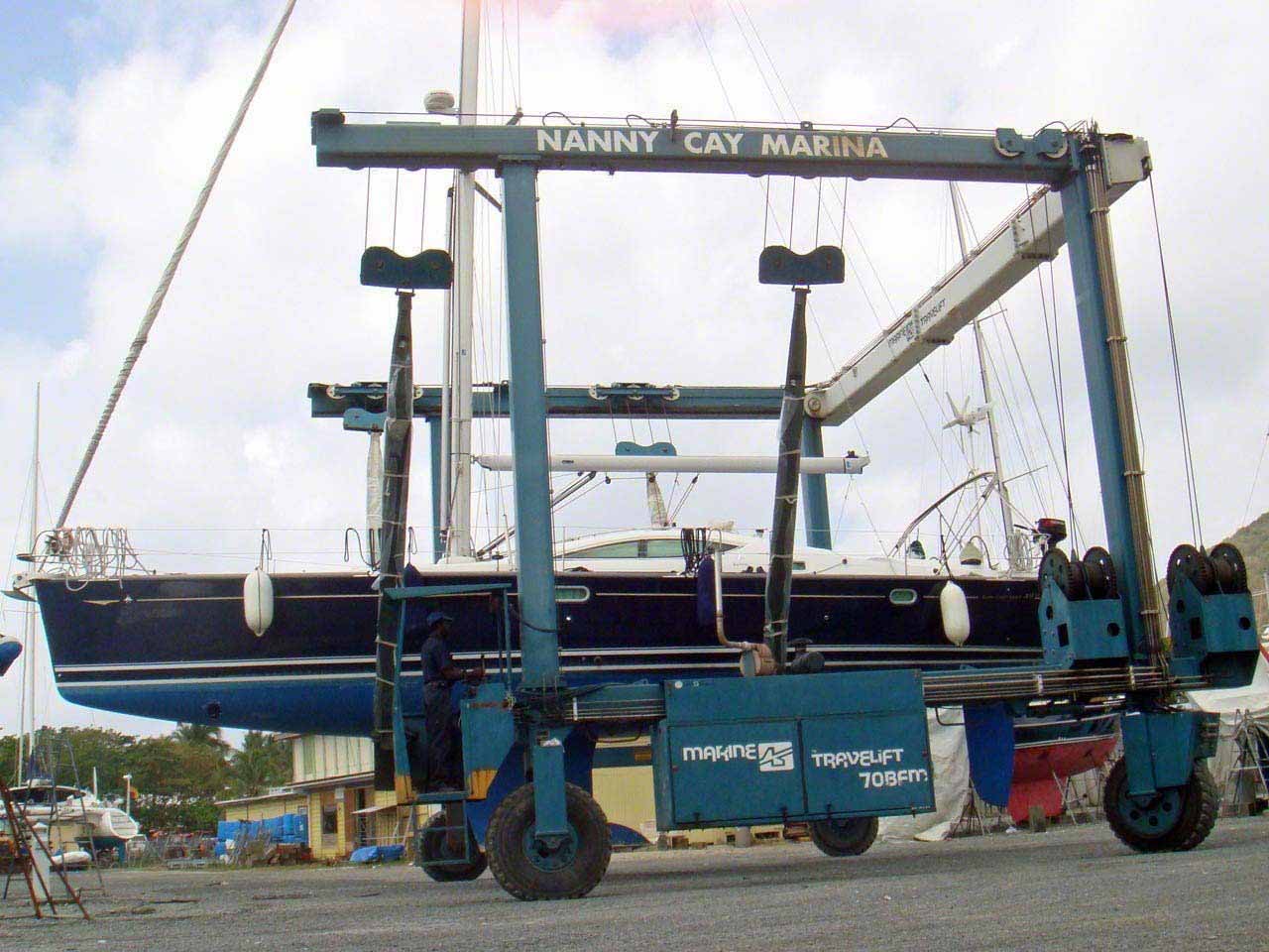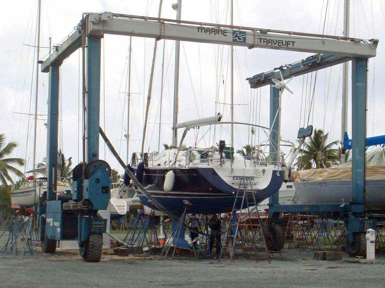 Floating in analgesic heaven, I drifted to the main office and paid the remainder of my storage bill, then got my yellow ticket to give to the Travelift operator and headed to the boat to replace the Gori Propeller sacrificial zinc anodes. I got that work done quickly, plus scraped a couple of things off the bottom and greased the prop mechanism. Even though it only took about an hour, I was drenched in sweat and looking forward to getting the boat hooked up to power at the dock and turning on the air conditioning.