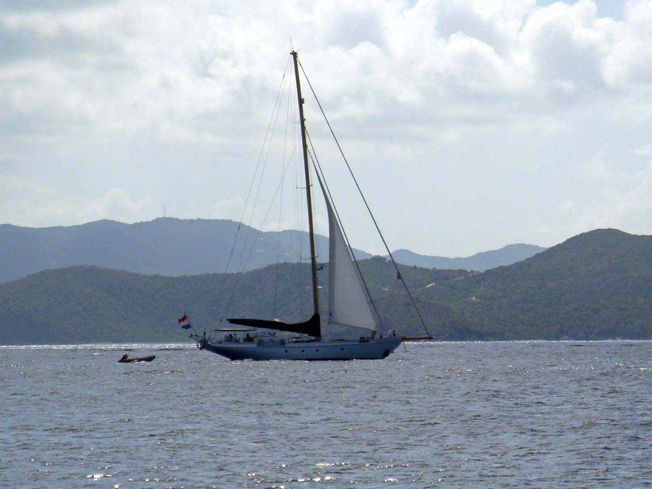 This day was a great sailing day, with both wind and waves coming at just the right speed and direction to make for quick and exhilarating sailing. We shot between Jost van Dyke and the West End of Tortola at speed, had a short stop at Soper’s Hole to pick up some food for the evening and then tack across the Sir Francis Drake channel to the Pelicans for a day of snorkeling and from there into the Bight for the night. I spent the afternoon doing some splicing work on lines and Björn took the dinghy for a spin around the Bight. The evening steaks off the grill were tasty and for a postprandial treat we went over to the Willy T’s. The crowd was light but still entertaining, as was the music and we ended up being the last guests to leave at around midnight. It poured during the night and, unfortunately, my backup camera got a bit wet and has now deceased. These are the last pictures until I get to go shopping in St. Martin and, due mainly to the camera and rusty pot situation, I think that we’ll depart for St. Martin tonight if the weather plays along.