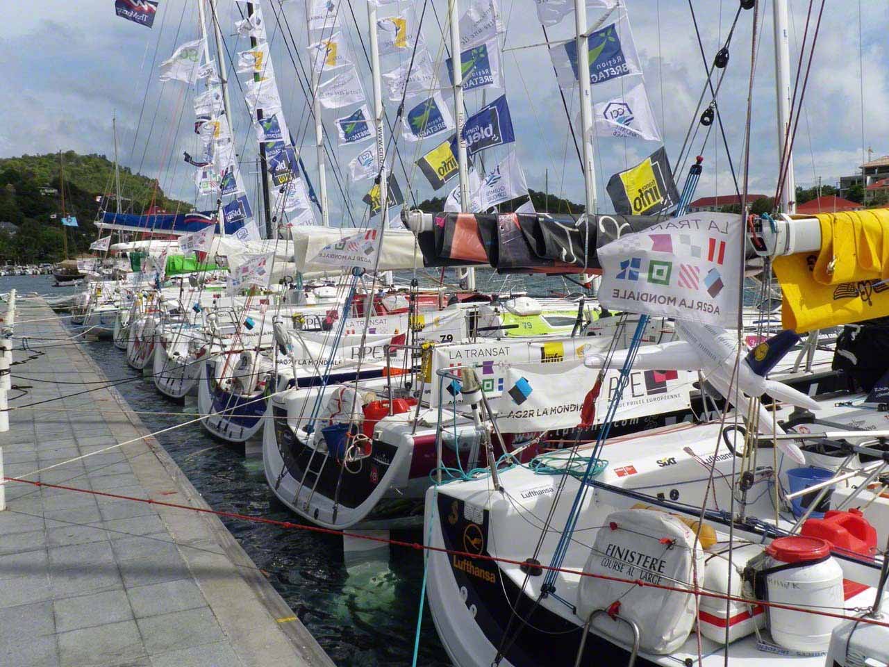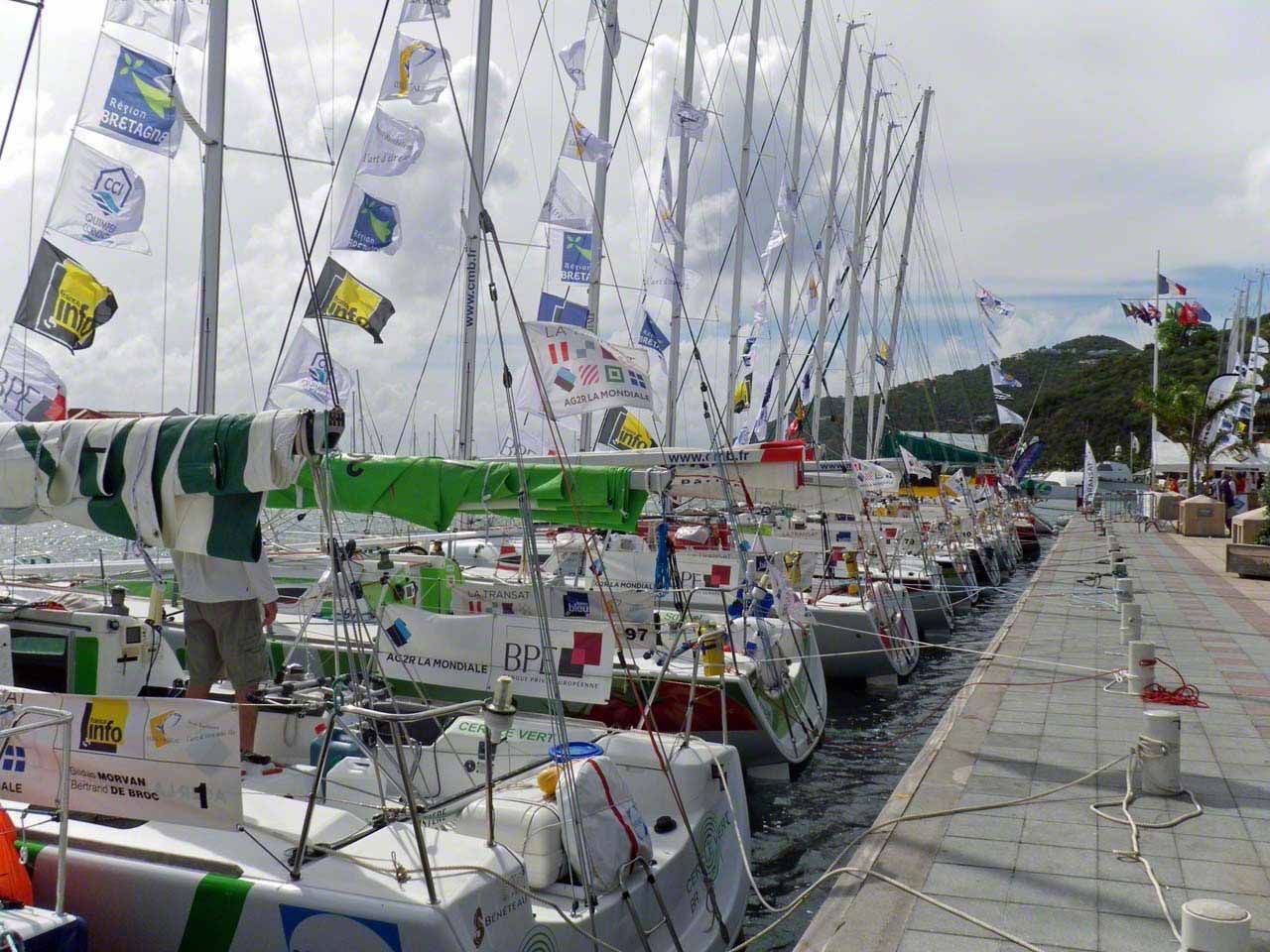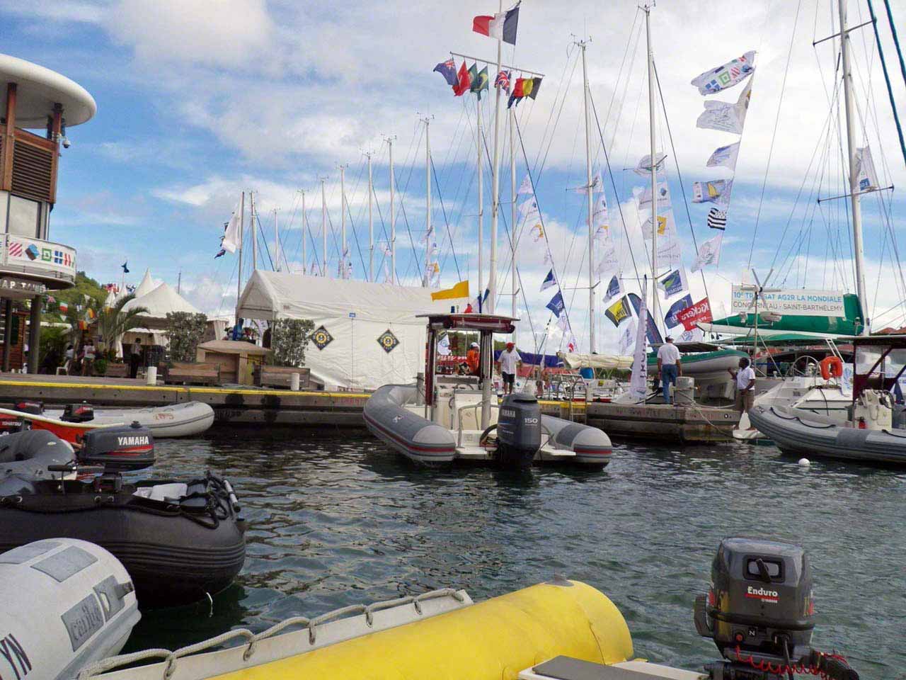 Once anchored outside of Gustavia we quickly got the dinghy back in the water and the engine bolted on and motored the dinghy in to clear customs and immigration. Once again, the system was quick and painless and we were out of the office within 10 minutes despite my having to use the French keyboard to enter our data; we didn’t even have to show our passports and were waved along (after paying our €11 fee). A TRANSAT race with many participants had arrived and the last stragglers also came in while we were there. The little Bénéteau race boats looked nice at the dock but they must have gone through some tough weather to make it from Brittany in France past the Azores without stopping and to St. Barths in 22 days.