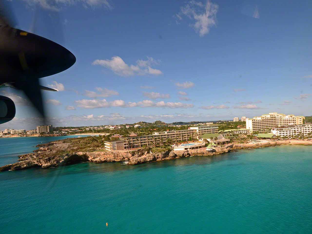 13:00 – I finally made it to the hotel just shy of 04:00am and the cleaning lady had to bang on a back door for several minutes to wake up the night clerk, who was just as tired as I was. Due to the time shift and long flight, I didn’t really sleep but kind of dozed until 7:30am when I showered and headed for the buffet breakfast (I still had that all-inclusive rate that I was trying to make worthwhile), then after a slow morning I’m back at the airport as write this – and LIAT just announced a 30 minute delay due to “operational reasons”, an acronym that means as little as the typical “police situation” in the USA when they block off a road. Ahh well, at least the sun is shining and I am seriously debating having my first Carib beer since before the hurricane season, but it is still pretty early.       I had 2 hours time to catch my connecting flight in St. Martin and as I wasn’t interested in shopping I spent most of the time at gate C3 which, although unoccupied, had a big TV screen announcing my flight number departing at 16:25 and status was “on time”. As 16:15 rolled around the screen changed to read “Boarding” but the counter and gate remained unoccupied. Then it changed to “Closing” and finally “Departed“ and I suddenly got a bit worried. I ended up going to the neighbouring counter where I was told “Oh, the displays are wrong and aren’t updated. LIAT leaves at gates in A”. Now I was worried, but thought that this was typically Caribbean, as I’d spoken to the same lady an hour before and told her that I was on the flight listed at the gate and if I could use their airline’s immigration form (to which she’d said “no”). At that time she didn’t tell me that I was at the wrong gate… sigh. Anyway, I rushed off to the other end of the airport and found a lone representative in an almost deserted lounge area. She told me that I should have looked at the gate number on my ticket (which didn’t have a gate number, as I was transferring flights) and then informed me that the flight hadn’t even arrived yet and was delayed about an hour. Ah well, at least all was not lost.
