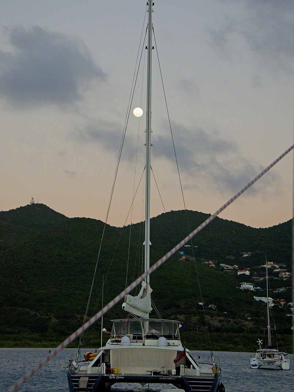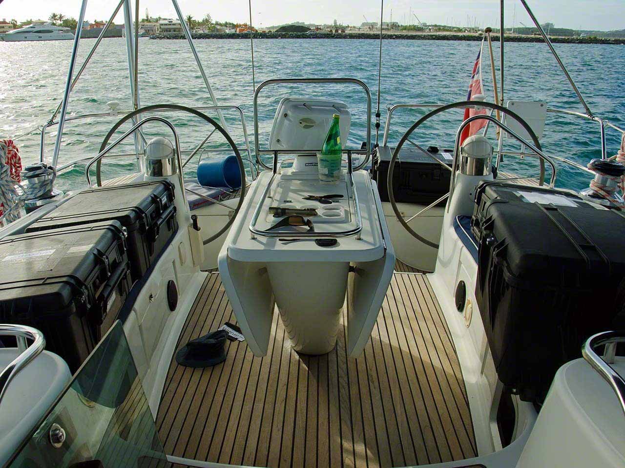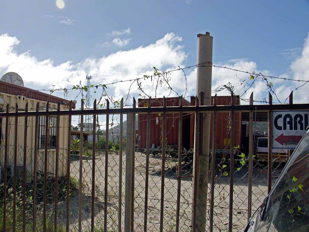 I didn’t get going until late, although I did listen in to the 07:30 cruiser’s network on the VHF. I puttered around on the boat and went to Lagoonies for a lunchtime sandwich, checking for a mail from the shipping company with no luck. Then I decided I’d really be happy with a French café au lait with a croissant and took my notebook in there as well – success, they told me that the container was going to be unpacked in the afternoon so I zoomed back to the Dutch side for a rental car. Unfortunately all they had was a Jeep for a bit more money, but I took it and drove to pick up my cases. I made it to CaribTrans and paid my $50 fees, then proceeded to their container unloading facility as seen in the picture and picked up my 5 cases, dropping my camera on the ground in the process. I was too worried that I’d broken it so I didn’t try to turn it on until I’d arrived at the dinghy dock; luckily only the lens cover was bent and twisted and the camera and lens were still functioning well. Getting the heavy cases from the car to the dock, then to the dinghy, and from there onto Zanshin was a big task, but I finally made it and started to unpack the contents, bit by bit. The first case contained the rest of the Froli mattress pieces for the 2 aft cabins, so I spent two hours getting those installed and making both beds comfortable for future guests.