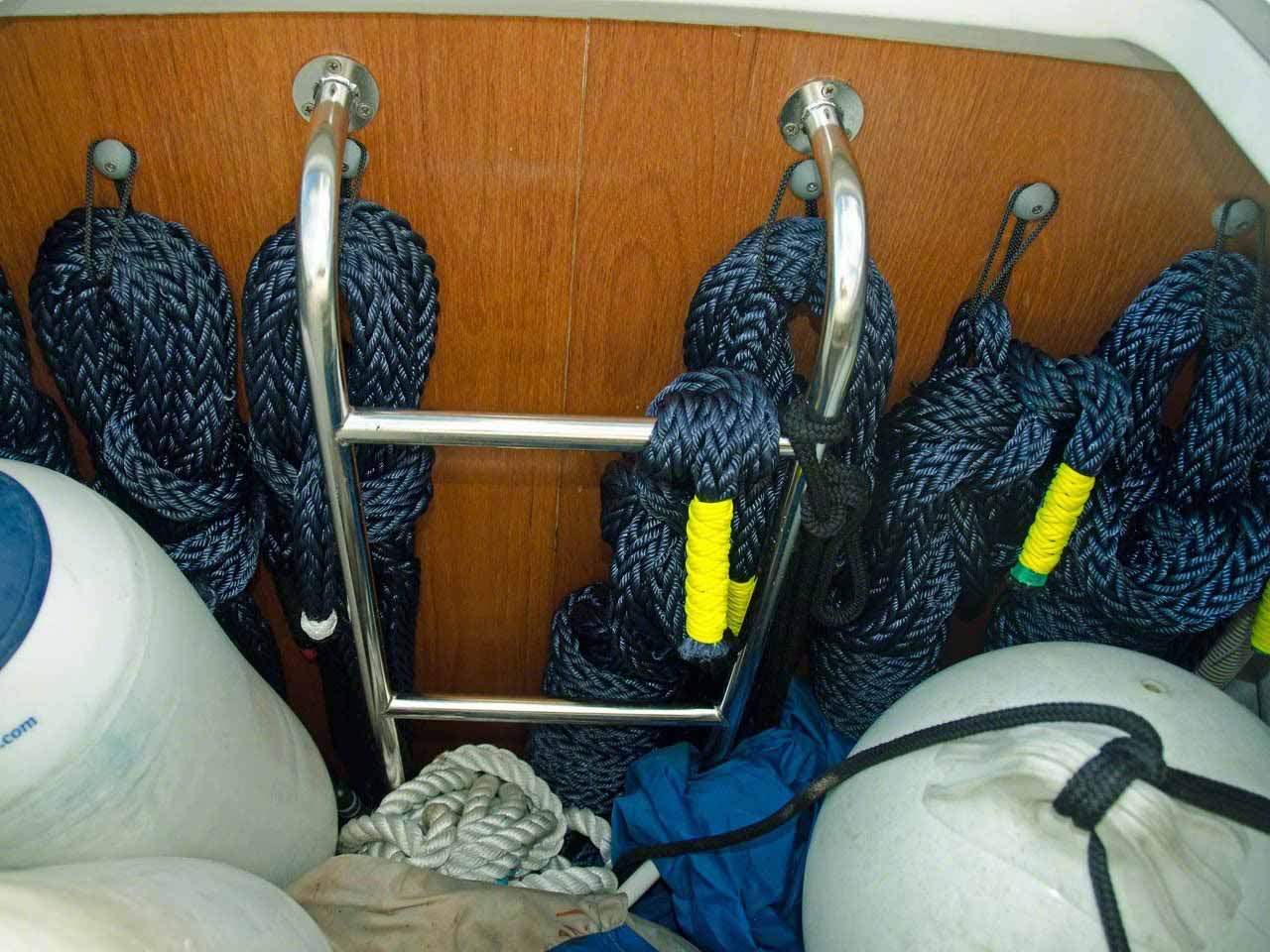 Unpacking those cases is like a delayed Christmas, I keep on finding things that I’d forgotten I even had and my main salon is knee-deep in stuff from the shipment. So far I’ve put in the spliced genoa traveller lines, the ones for the mainsail are, unfortunately, too short despite being all prepared with eye-splices and whipping. Perhaps it will fit on the Jeanneau 43DS which has a smaller traveller as it would be a shame to let them go to waste. It looks like I can get out of here in the next couple of days as all I need to do is wait for the canvas work to be completed and (of course) for me to stow all the new gear.