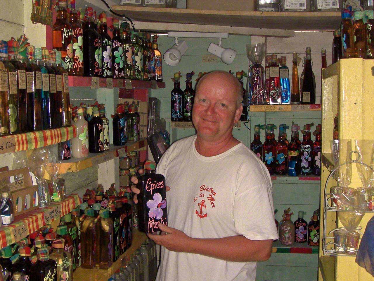 Originally I had planned on departing for St. Barths along with the crew of Arita, but the weather wasn’t optimal for immediate departure today, plus I had a headache and Rob and Lauren were still waiting for 2 packages to arrive so we got a small rental car and drove off towards the French village named “Cul de Sac“ in search of a distillery called Ma Doudou which they had purchased some bottles of. After a bit of looking around and having Rob ask for directions, we did find a gated community with a little sign showing that we were in the right place, plus the secret code for gaining entrance. The store was quaint and the spiced/flavoured rums were tasty indeed. Rob was disappointed that they didn’t give tours of the distillery or bottling facilities, but that didn’t keep him from purchasing some samples – for medicinal purposes only, of course. After our stop there we had a great lunch with wonderful views of Île Tintamarre in one direction and St. Barths in the other before heading into Philipsburg for some shopping for camera accessories and another stroll through the aisles of Cost-U-Less for boat provisions.