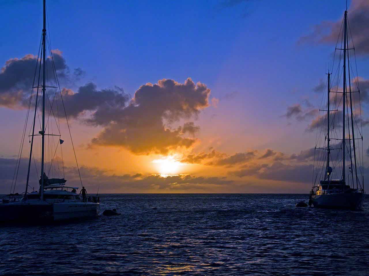 Instead of weighing anchor and motoring to Gustavia I made sure I had my oars, half a tank of gas and a handheld VHF on board the dinghy and set off for town on my trusty Caribe dinghy. Despite hitting some waves quite hard I made it to town dry and cleared in – this time it was fast, as soon as I’d typed in the name of the boat the system filled in all the other details and all I needed to do was type in my previous port and intended next port and then my name and it, again, completed the rest of the details and numbers and I was in and out of the office within 5 minutes despite all 4 terminals being in use; one opened up as I entered and the other 3 were occupied by captains of large vessels with lots of crew data to enter. I went to the same café where Rob had negotiated a mortgage to pay for the bill and was fortunate that I’d been to a cash machine before my visit and had enough hard currency along without having to leave my boat papers as surety for the 2 coffees and raisin bread (the Wi-Fi was included in the package price). As befitting the price, the quality was excellent and from my seat in the corner I watched the traffic go by – both the vehicles and the pedestrian. St. Barths is the only place in the Caribbean where most of the passers-by were wearing clothing more valuable than all my T-Shirts aboard and where the women really did dress up to walk along the boulevard in the daytime heat. I did go overboard while shopping, as I went in there hungry and immediately made a beeline for the cheese counter where I did a roundabout sampler of many different cheeses and a large baguette; then I got some Carib beer and other necessary groceries and was glad that the credit line on my credit card was sufficiently deep; I’ll have to pay that grocery trip off in small flex-pay instalments. Back on the boat I got a visit from a British couple who are looking for a boat to purchase and were interested in looking at Zanshin I. Fortunately I’d done a bit of cleaning and the boat was presentable. I’m not sure if they remain interested, but we’ll go on a sail tomorrow – with my luck all sorts of bits and bobs will fall off, fail to function, or break during this demonstration ride.