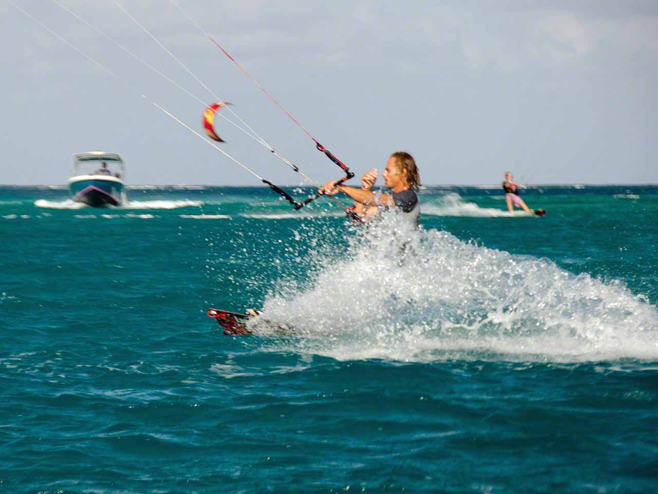 I barely left the boat today. I spent the morning hours on the internet and catching up on these blog pages, then did some work on separating my private things from those that belong to the boat, then prepared the new genoa lines but failed when I tried to attach the new lines as it was too windy and the partially unfurled genoa was flapping around so much that it almost lifted me overboard! I’ll postpone that task for a time when there is less wind. I took a dinghy tour of the new mega yacht dock facilities under construction, then got some pictures of the kite surfers and finally ended up towing a fellow cruiser with his dinghy and failing outboard from the centre of the North Sound to his catamaran.