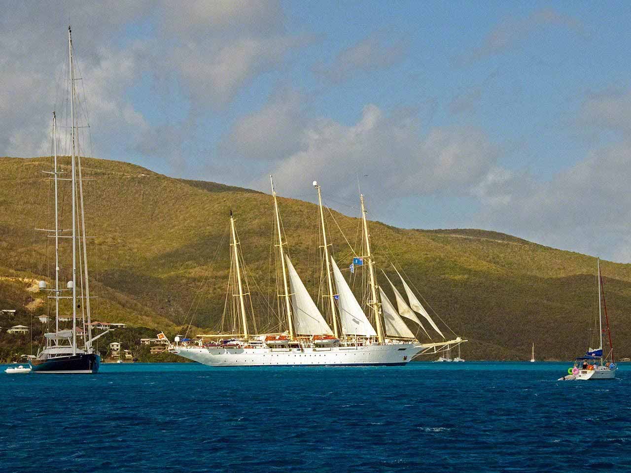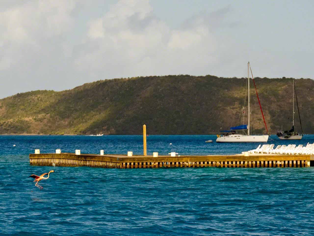The winds and waves were still strong and I was unsure of where to go. Paul from Tangaroa came by for an espresso and he convinced me that Anegada was the place to go and we decided to head up there at 10:00. I wasn’t optimistic about the weather so put in a bit too many reefs for the conditions, but still had a rocking passage up to Anegada with the speed rarely going below 8knots. As my boat has more LWL than Tangaroa, I arrived at the outer markers somewhat earlier than he did so I dropped the anchor and did cleanup tasks until he arrived, then we transited the rather tricky and shallow entrance together. I managed to find a weak internet connection and exchanged some e-mails with Germany, then went ashore for a walk around and somehow, magically, ended up sitting at Potter’s bar and didn’t get any further until it was time for dinner! Paul and I had dinner together and, while pricey, it was a perfect ending for a great sailing day and comfortable day on the islands.