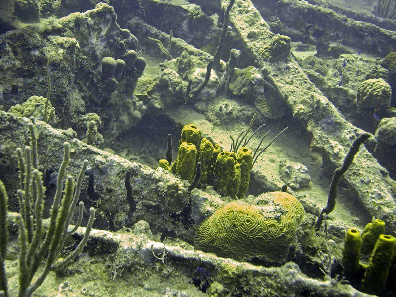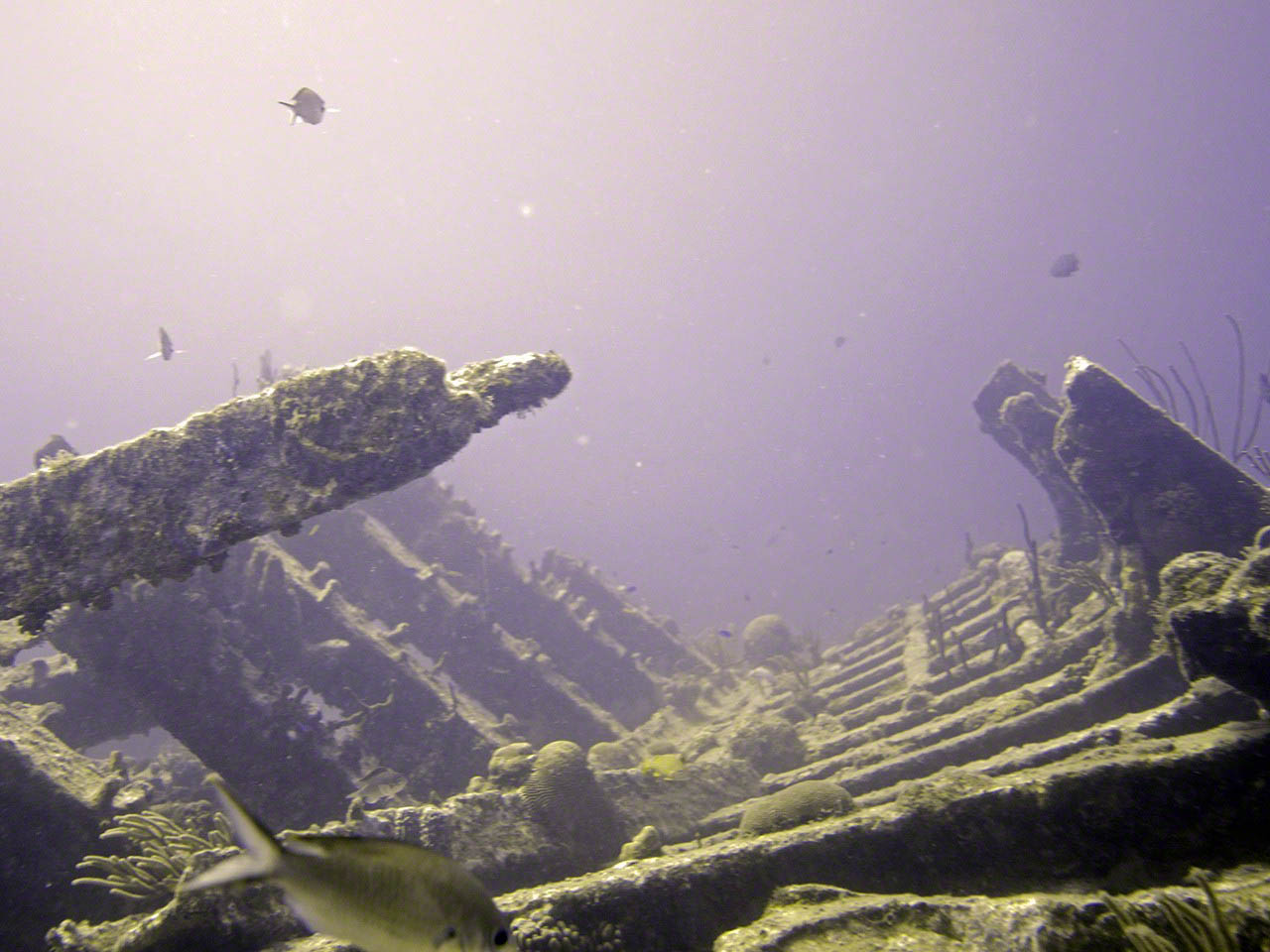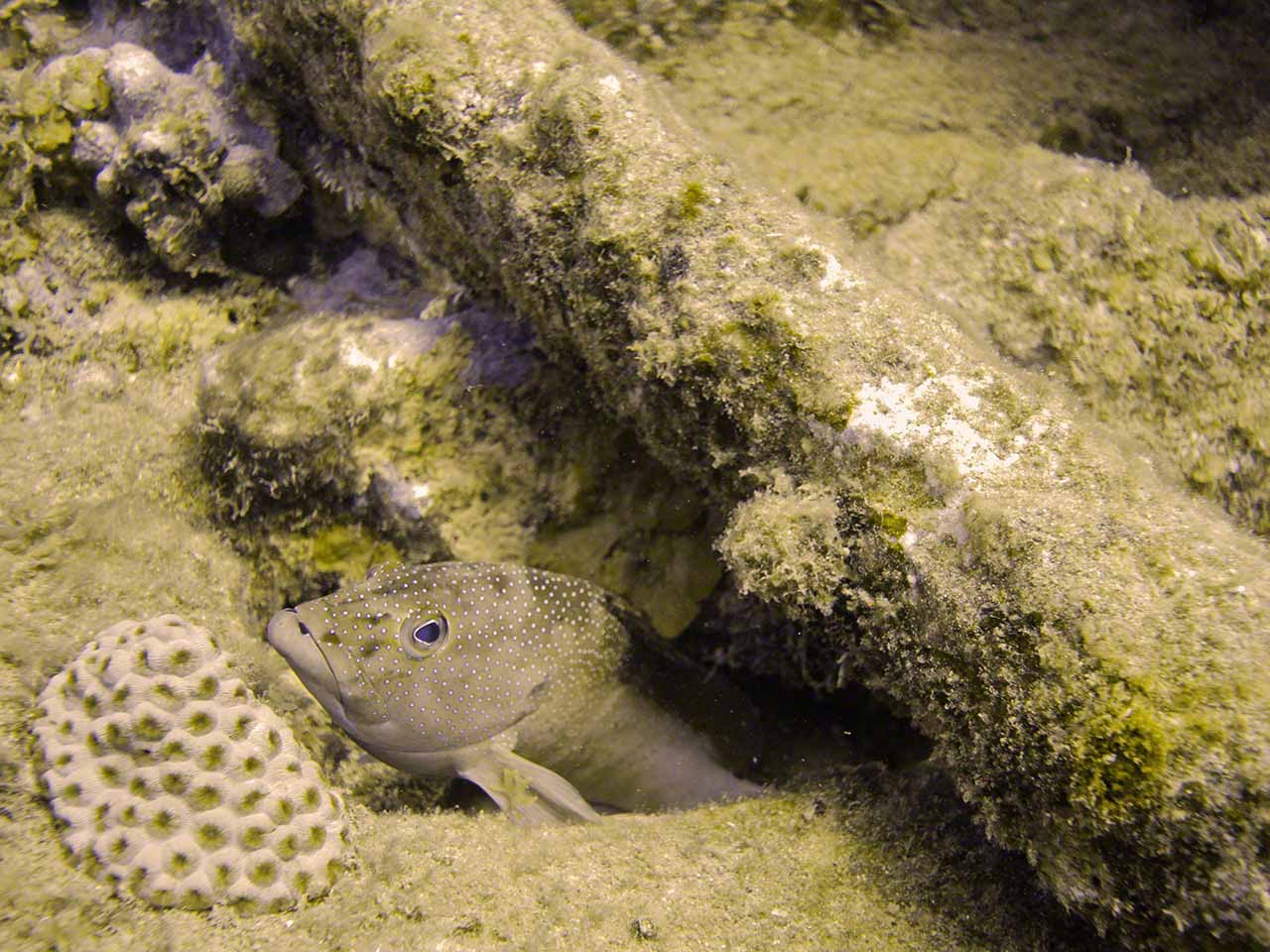 We set off a bit late from Trellis, due mainly to our activities of the night before, and motorsailed to Salt Island and took a mooring ball at the site of the wreck of the RMS Rhone, a national park in the BVI and the most popular dive site here. After setting up, we started to descend but unfortunately Nat couldn’t equalize pressure with her ears and had to return to the boat; this was unfortunate for her but very lucky for me as I was able to use her full tank instead of my half-full one.
