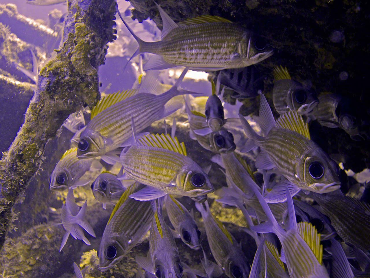 We dove the wreck twice, the shallow stern section and the deep bow section (missing the actual body of the boat, but we’ll do that next time) and for most of the time we were the only ones at the site. Afterwards it was off to The Bight on Norman Island and a short visit to the Willie T’s but the music and crowd wasn’t to our liking so we returned to the boat for a tasty dinner cooked by Rob and Nat (I did the washing up part by placing the dirty dishes into the dishwasher) and a relatively early night.
