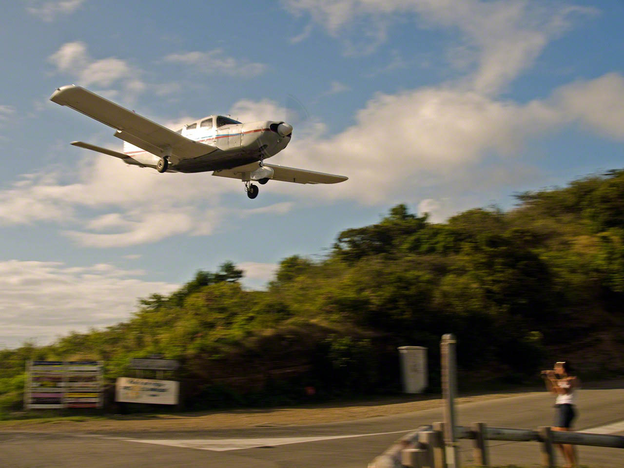 We had a late breakfast today, then a short snorkel to the edges of the Colombier anchorages where Wolfgang discovered that he and snorkels don’t get along. After that we motored into Gustavia and proceeded to anchor there in order to clear in and go shopping ashore. The clearing in part was quite easy, but everything – including restaurants and cafés were closed up tight on Sunday. We did find a restaurant that was open and serving lunch and after stoking up on energy we walked up the hill to see the aircraft approach and land – an impressive sight as the aircraft come over the roundabout at the top of the hill and then dive down towards the very short and sloping runway.