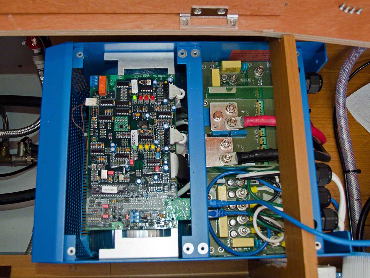 Back on board I attacked the task of getting the Bauer dive compressor to start up without blowing out the Victron inverter/charger. It turned out that the DIP-Switch settings were inappropriate and set to only allow 11A instead of the 40-50 that the system could actually deliver and once I had that set up correctly the dive compressor ran without any problems at all.