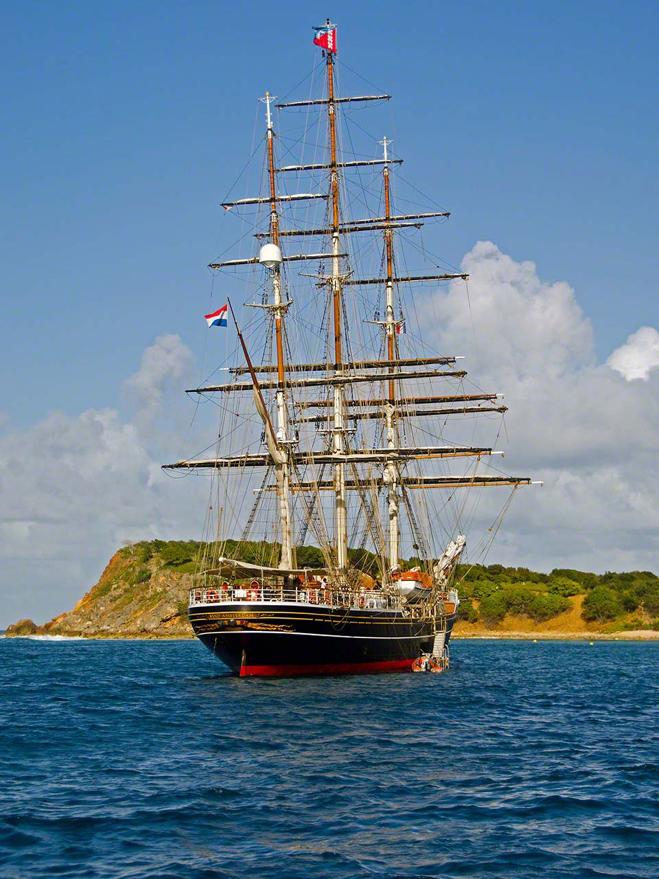I’m writing this at Île Tintamarre while the boat is rocking very heavily in the swell – but for some reason I get a powerful internet signal on this deserted island and am taking advantage of that to catch up on things. Anchored behind me is the impressive Stad Amsterdam but even that tall ship is rocking heavily in the swell.