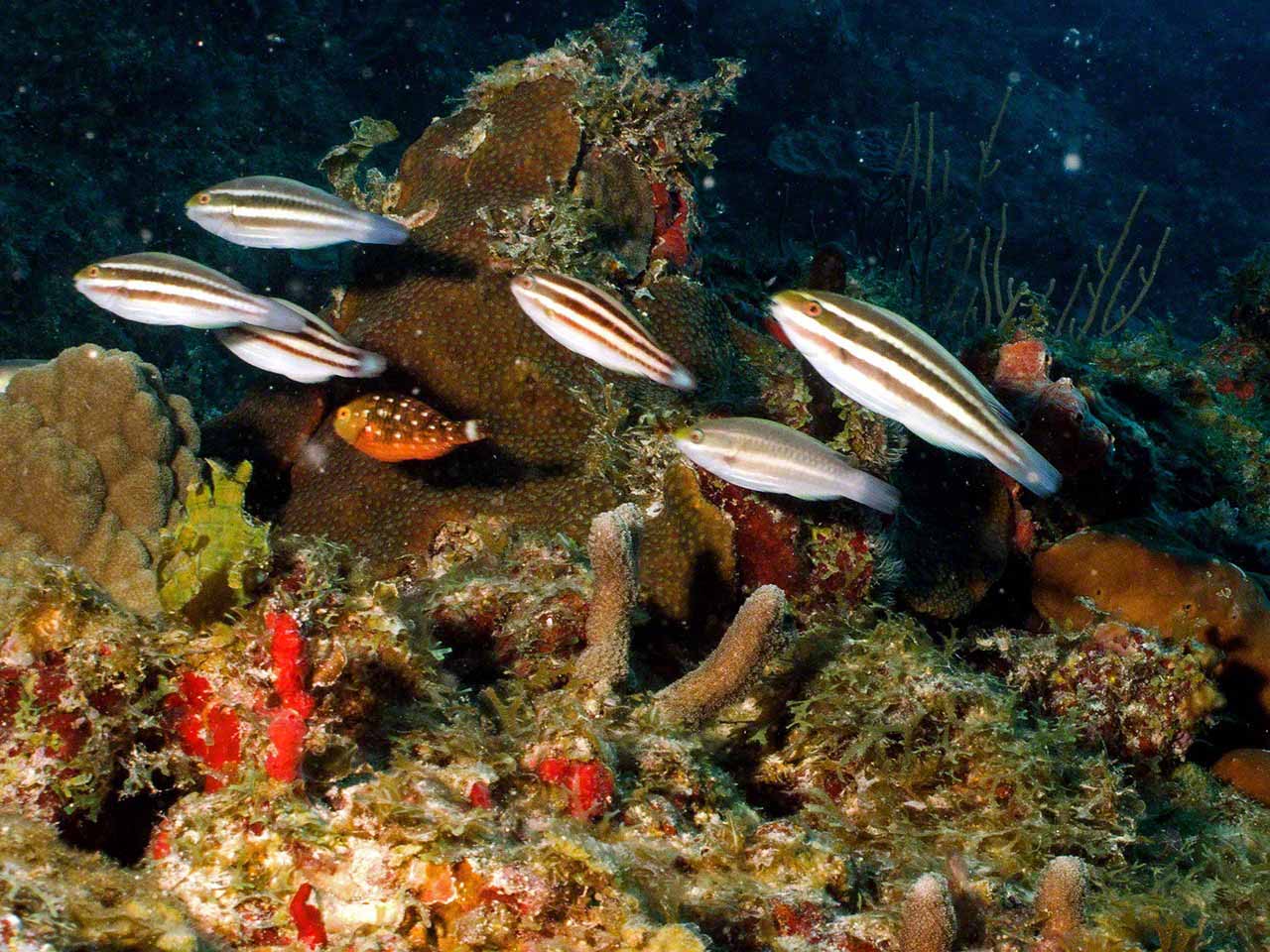 I woke up early to get set up and find my PADI card so that I could join the 2-tank dive with Octopus Diving in the morning. I arrived there at 07:45 and found out that the boat was heading to Île Tintamarre for a dive off the reef and another on the sunken barge. I’d forgotten how fast and how much pounding those little dive boat take but we made it to the dive site in short order and were soon in the water off Tintamarre, with a good swell hitting the boat and making it smart to descend as quickly as possible. I had the camera along but I’d put in the wrong settings (1/125 shutter and F18 with a flash – great for macro but miserable for anything further away) so of all the pictures I took just a few worked out, particularly sad for the second dive on a sunken tugboat which was full of wonderful fish. On the positive side the dives were a lot of fun and I will surely return to the tugboat wreck another time.