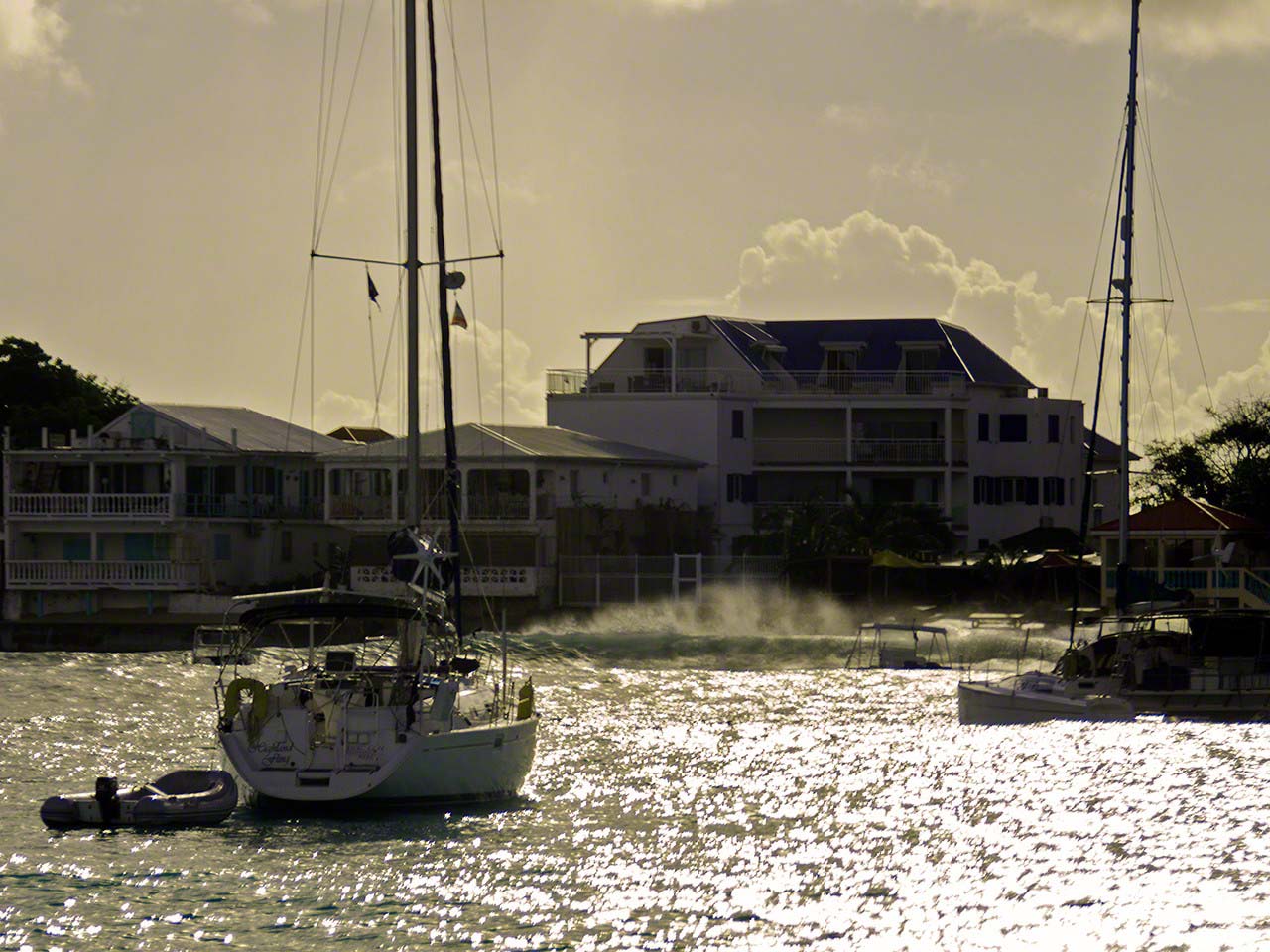 I’ve been aboard all day as getting ashore is going to be difficult, at best. The boat is still rocking back and forth, I even had to loosen the oven while cooking so that the pan didn’t slide all around. According to WindGuru I’ve got to get past this night and then things will settle down once again but I hope to get out of here early tomorrow and to clear out of St. Martin for the BVI, at least until next Tuesday or Wednesday when I need to return to here in order to pick up my next guests.
