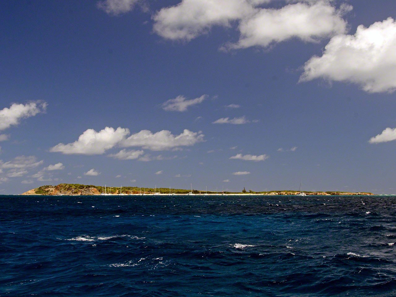 I originally had planned to use the calm seas and light winds for a quick sail down to Saba for a day or two, but once I’d left the sanctuary of the anchorage I realized that the wind had picked up and was causing mare’s tails on waves (meaning 15kts or more) and there was a pretty big swell coming around the island so I quickly changed plans and took a comfortable half-wind sail back to Grand Case via Île Tintamarre. When I passed the island I saw that the anchorage was very crowded so I continued on without stopping and anchored in Grand Case. I spent some time catching up on e-mails and then took my Ace Hardware paint stripper and scraped the accumulated sea grass off the waterline on both sides of the hull and then spent two hours trying to figure out how to repair the sump in the port forward shower – I can read electric plans and know how relays work, but couldn’t for the life of me figure out how the thing was wired — until I realized that the shower sump switch wasn’t electric (which explained why I couldn’t find the wires) but was actuated by a thin tube to a pressure-sensitive relay. This tube had fallen out… problem found and quickly fixed.