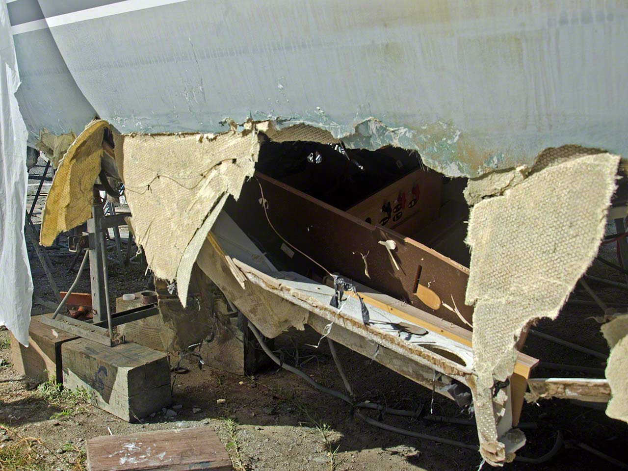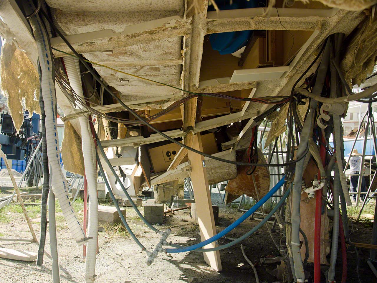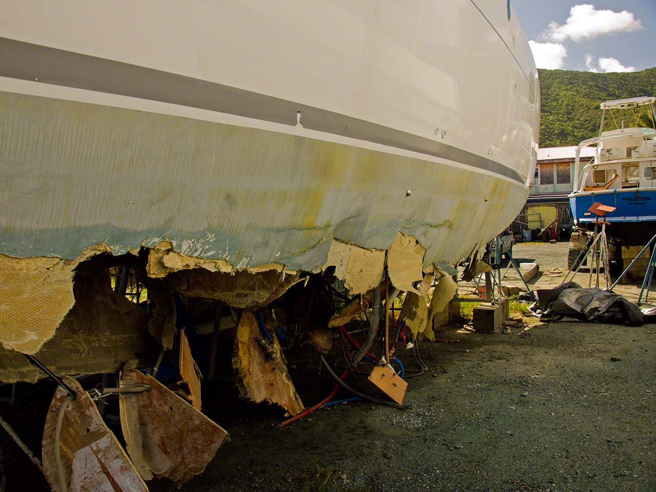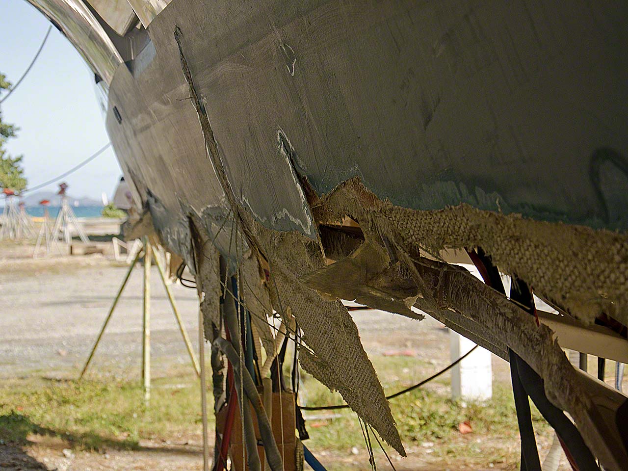 Several months back the internet forums that I frequent dealing with sailing had several posts regarding a new catamaran that had run up on the reef at Sandy Spit of Jost van Dyke. Initially there was a series of pictures showing the grounded cat and then a photo essay showing the salvage operation; unfortunately these pictures soon disappeared from the internet (perhaps due to insurance and liability questions) and recently an advertisement for sale of this boat appeared here on yachtworld.com. Looking at the pictures below, one can see how carefully the wording of that advertisement has been selected and once again reconfirms my conviction that salesperson’s statements are to be taken with more than just a grain of salt.