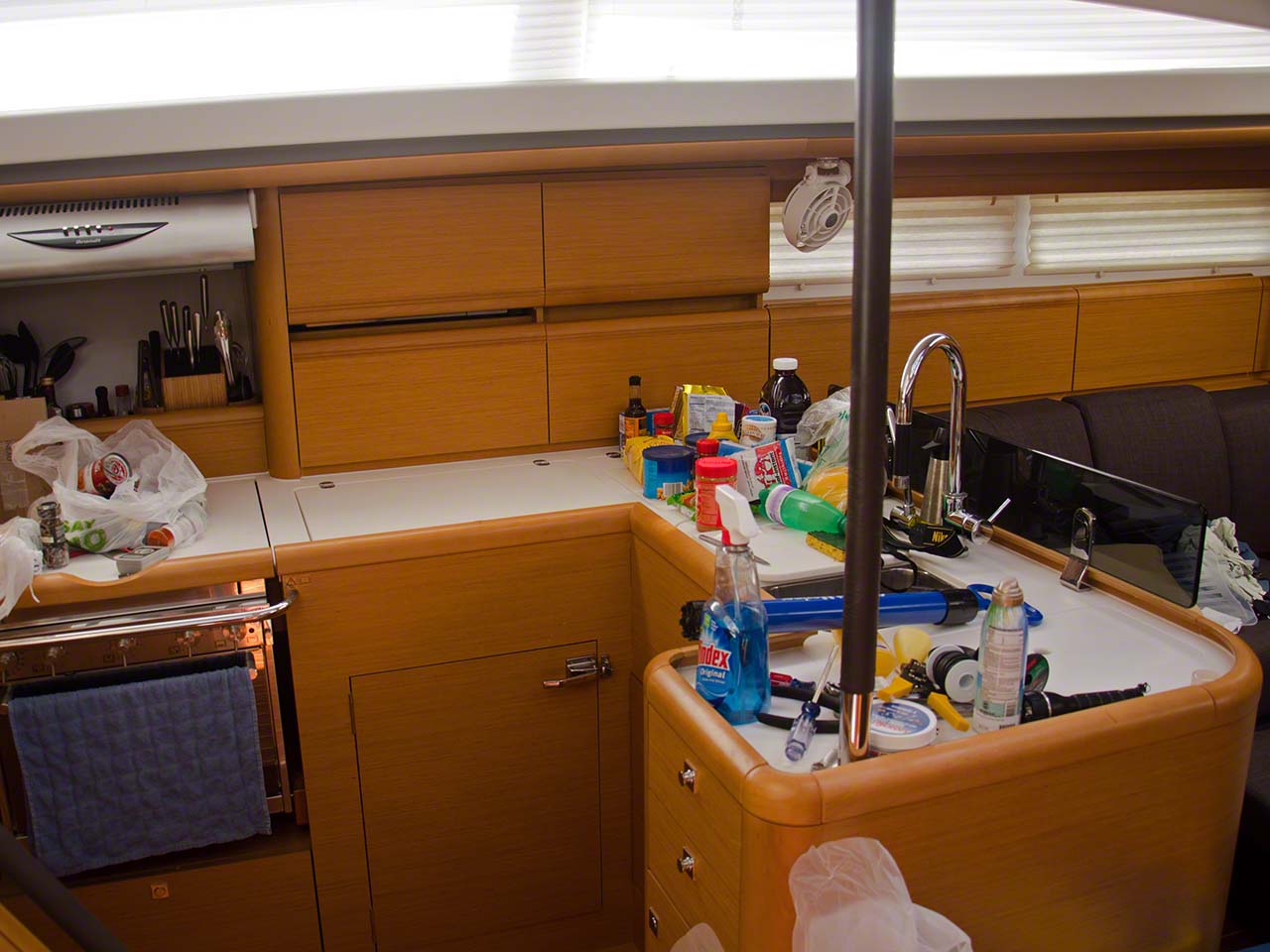 I’m finally seeing headway in getting the boat ready for travelling again – it is quite a bit more work getting prepared and ship-shape than the smaller boat. I had a well-known local guy called Vernon come by to clean the cockpit and decks and subsequently also do the topsides (the vertical surfaces of the hull). He is a fixture and has his “secret” recipe which he hopes to patent one day, except that everyone at the docks knows what it consists of, but he does very good and particularly careful work and is worth every penny of his wages. It was a bit of work, but I managed to get the bimini and dodger set up alone. I met a British/Australian couple who had purchased an ex-charter Bénéteau 42 and that put them in the same category as my first boat (an ex-sunsail charter Jeanneau 43) and I invited them over for happy-hour drinks around sunset and we ended up going below as some showers moved in and I wanted to show off the advantages of air-conditioning. They brought over some Murphy’s Irish Stout (with a built-in widget similar to that in canned Guinness) and it tasted incredible – but as I’d not eaten all day it also packed quite a bit of punch!