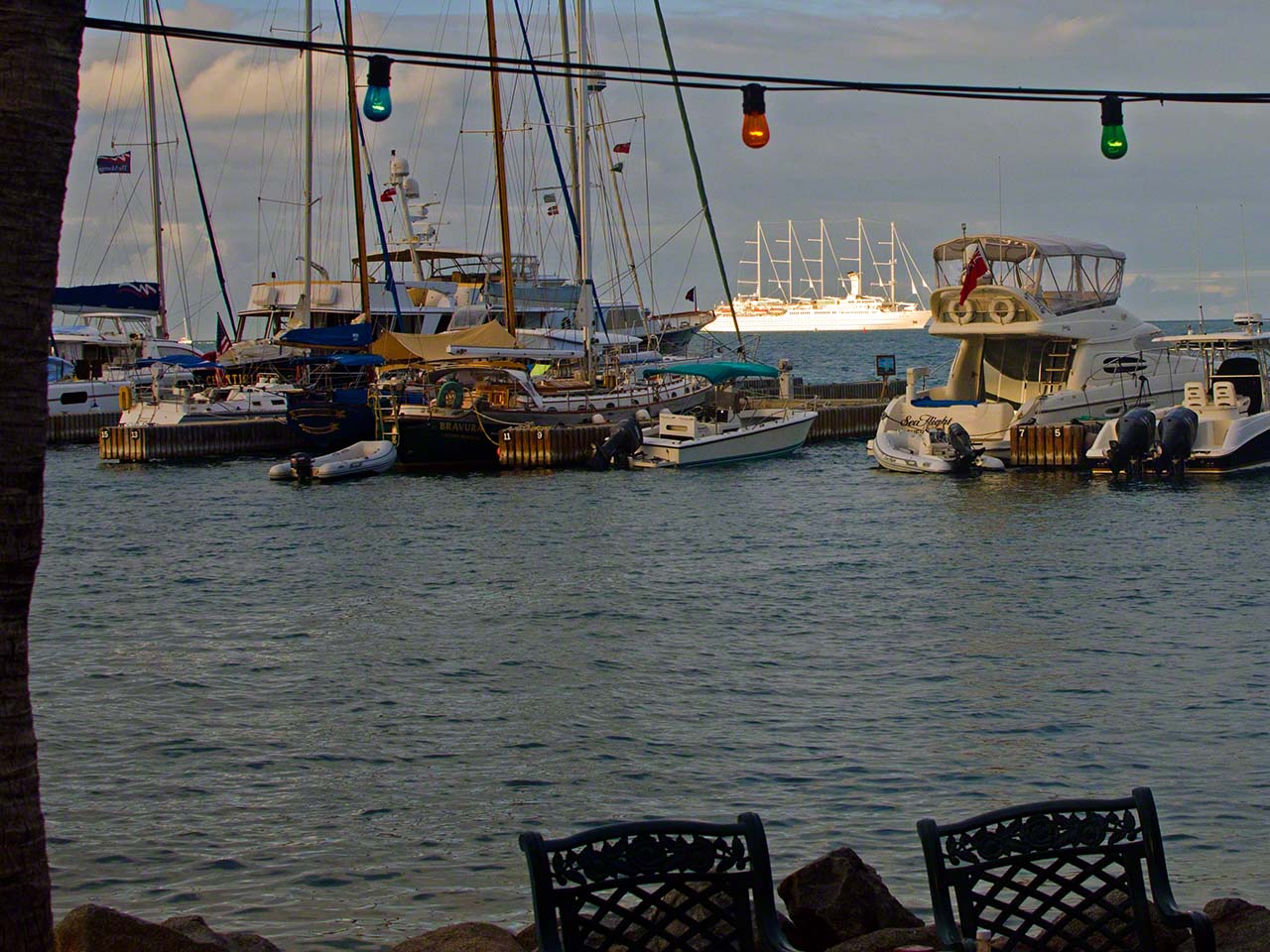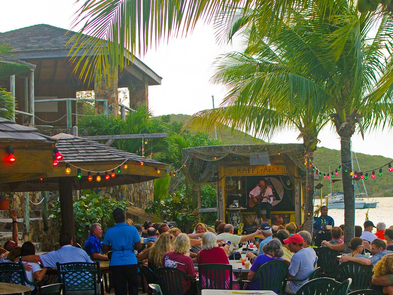 Today was another lazy day in the tropics. I remained at anchor until 2 in the afternoon, doing some cleaning below mixed with browsing the internet with the fast free internet connection at Saba Rock and then I met a gent that I’d known through an internet sailing forum, he’s chartering a very big Voyage 520 catamaran called Ottertude which makes Zanshin seem a lot less large. After they departed for Norman Island I raised the genoa and sailed the one mile downwind to Leverick Bay for the evening. I cleaned up and went ashore to say “Hi” to Nick and Michael and sat through the happy hour show.