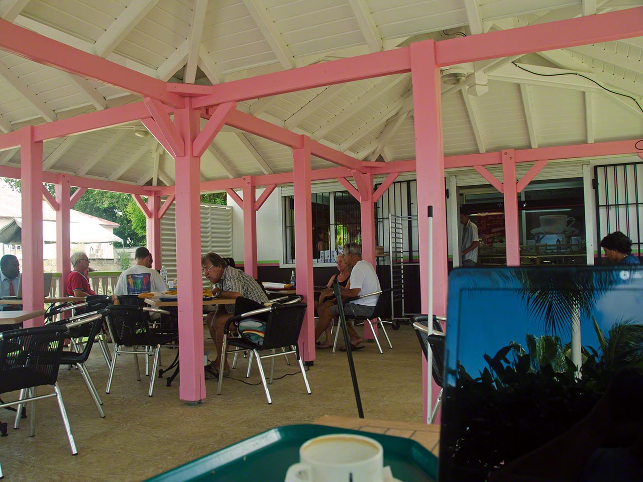 After a bit of shopping at Island Waterworld, then Electec we had a bit of food and drink at the newly refurbished Lagoonies – a new wooden roof ensure that everything and everyone will stay dry during passing rain showers. After Lagoonies we drove past the dive shop and thence to Bobby’s Marina where Duncan had gotten word of a spare part for his Perkins diesel engine; unfortunately the part was almost the right one and we made a final stop at the sunset bar to watch a couple of jets takeoff and land before returning to Grand Case