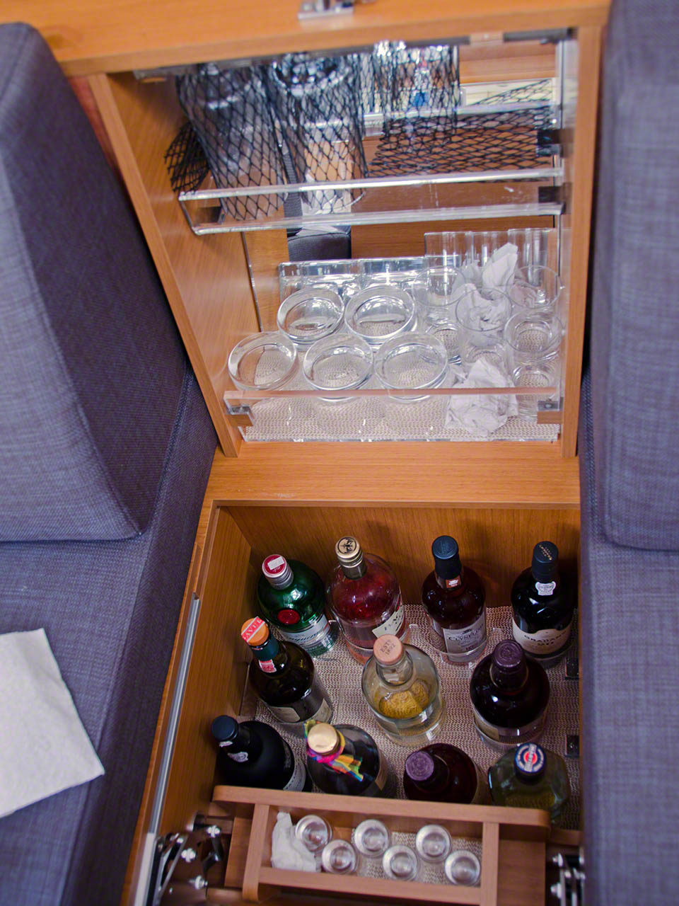 Today was a work day aboard the boat; I decided to finally put in the cabinet liners that I’d purchased to prevent stuff from sliding all around during heavy weather. I didn’t realize how much time it would take to measure and cut the liners, then remove the cabinet contents, clean up and then put everything back after placing the liners.