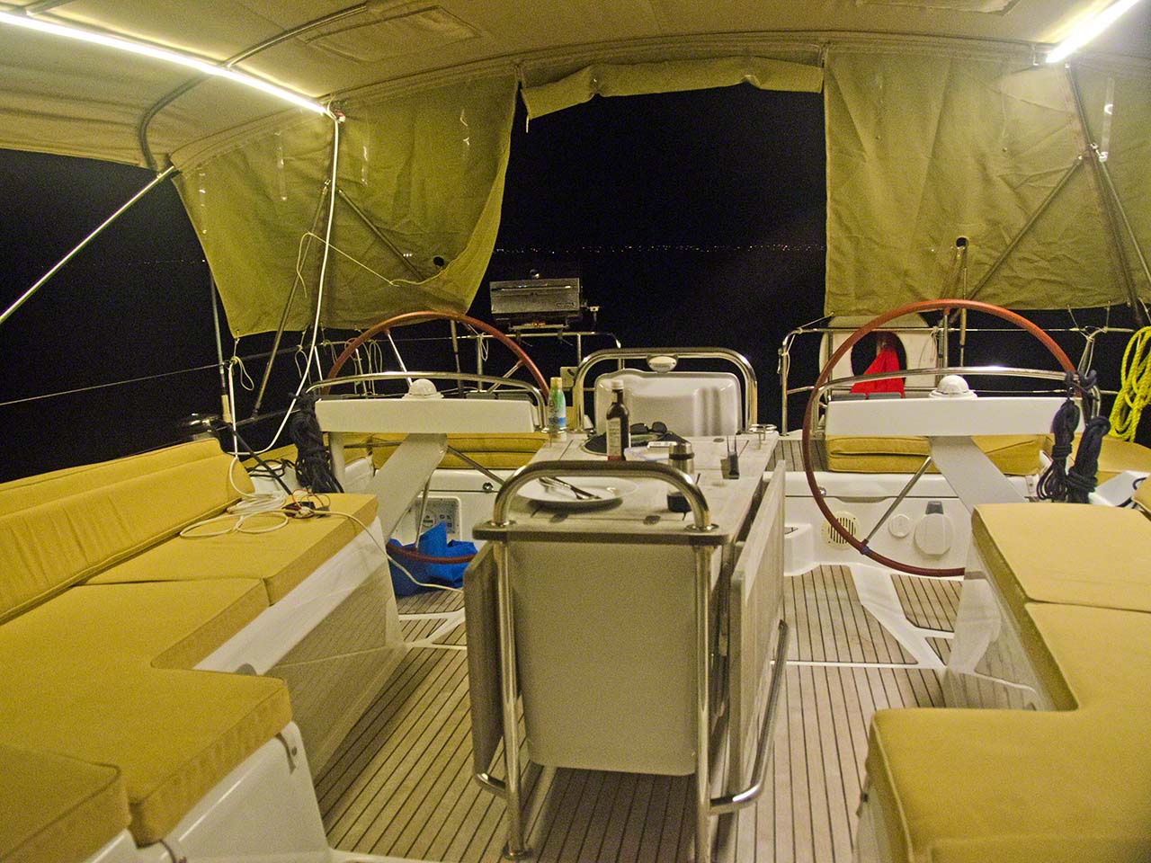 After the exciting race view right at the mark, I returned to the boat and proceeded to work on the LED project for the cockpit area and when I finished the temporary installation and tested it after dark I was pleasantly surprised and won’t put the other 2 LED bars up, as what is there already is more than sufficient for background mood lighting up to bright reading lights. The next step in the project is going to be wiring the permanent installation and I’m sure that will take up most of the day tomorrow as I’ve got to lead the wiring from the breaker panel at the navigation station all the way to the instrument panel switch assembly at the starboard wheel.