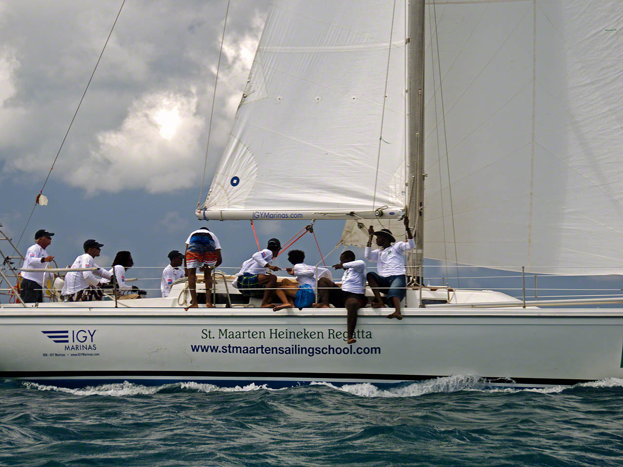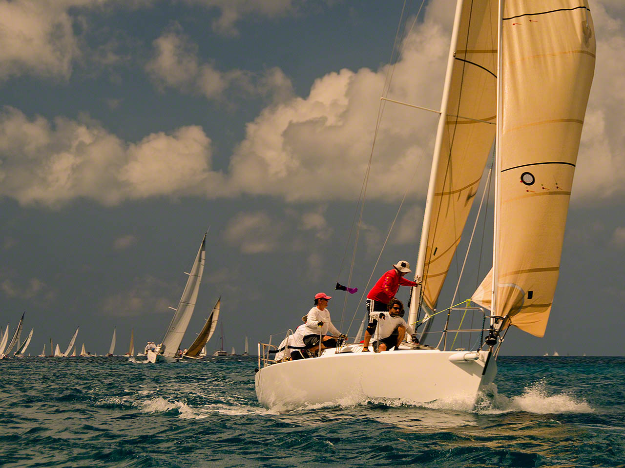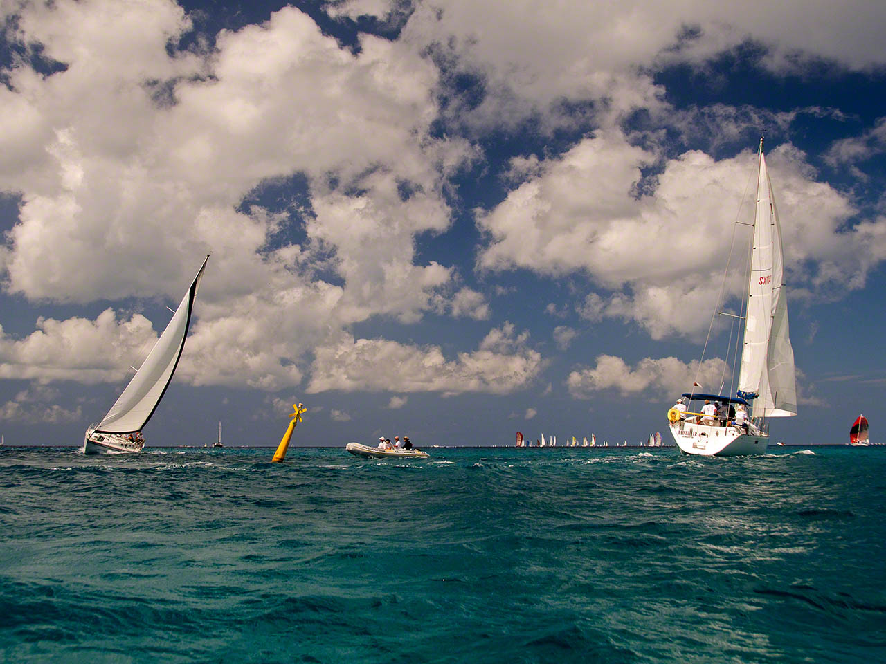 While working below decks and listening to the local rock/blues station which was also reporting live from the Heineken Regatta I popped up on deck and was surprised to see that a lot of boats were approaching Creole Rock and then turning – one of the marks was close by so I hopped into the dinghy with camera and backpack in hand and took some pictures – a lot of pictures.