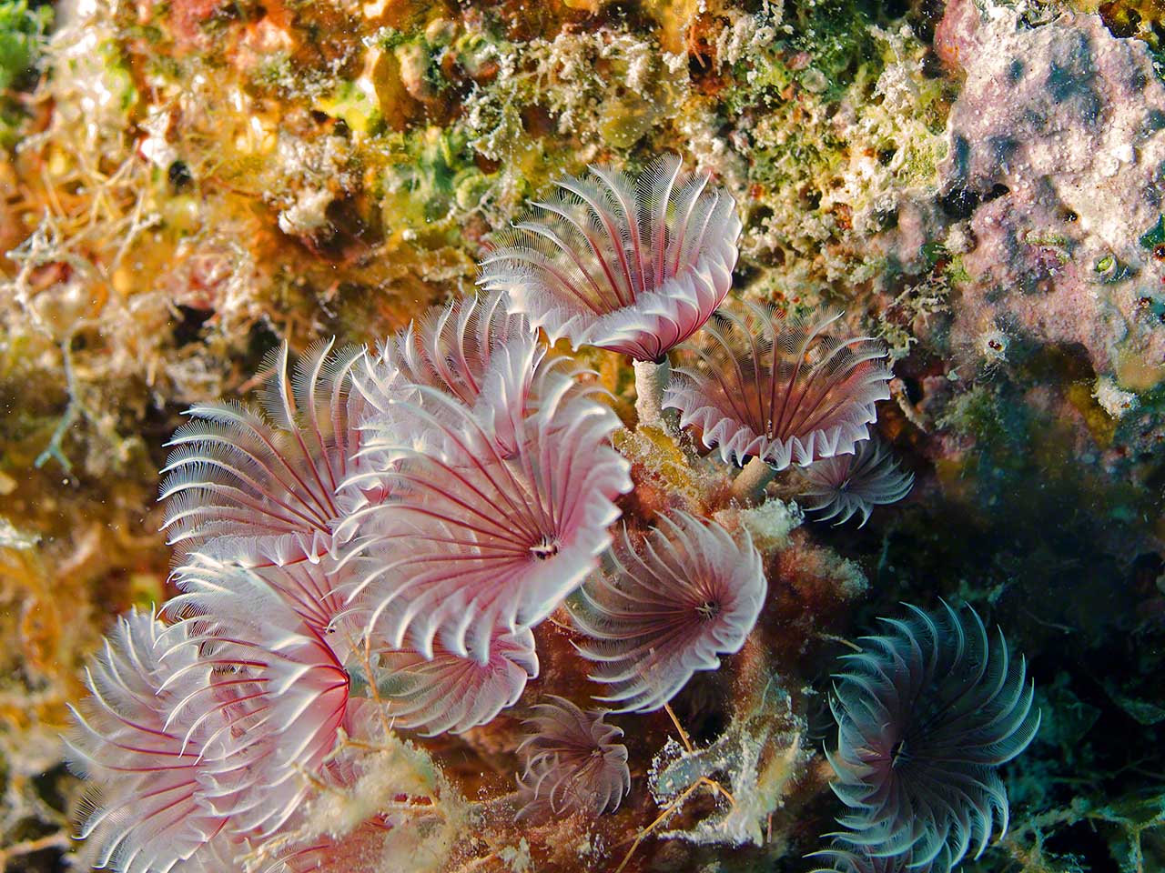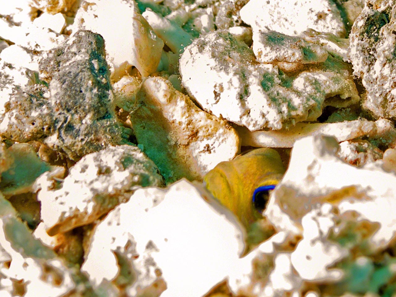 After cleaning up aboard in the morning and generally procrastinating any and all tasks, I dinghied out to Creole Rock with camera aboard to take some pictures while diving. I put the x2 and x4 extensions on the lens and the result was that things had to be within a couple of inches of the lens in order to be in focus, so I didn’t get too many pictures but had a fun dive and no know for certain that my dive computer has bitten the dust (I replaced the battery and saw a brief LCD flash on the screen, but it has been dead since).