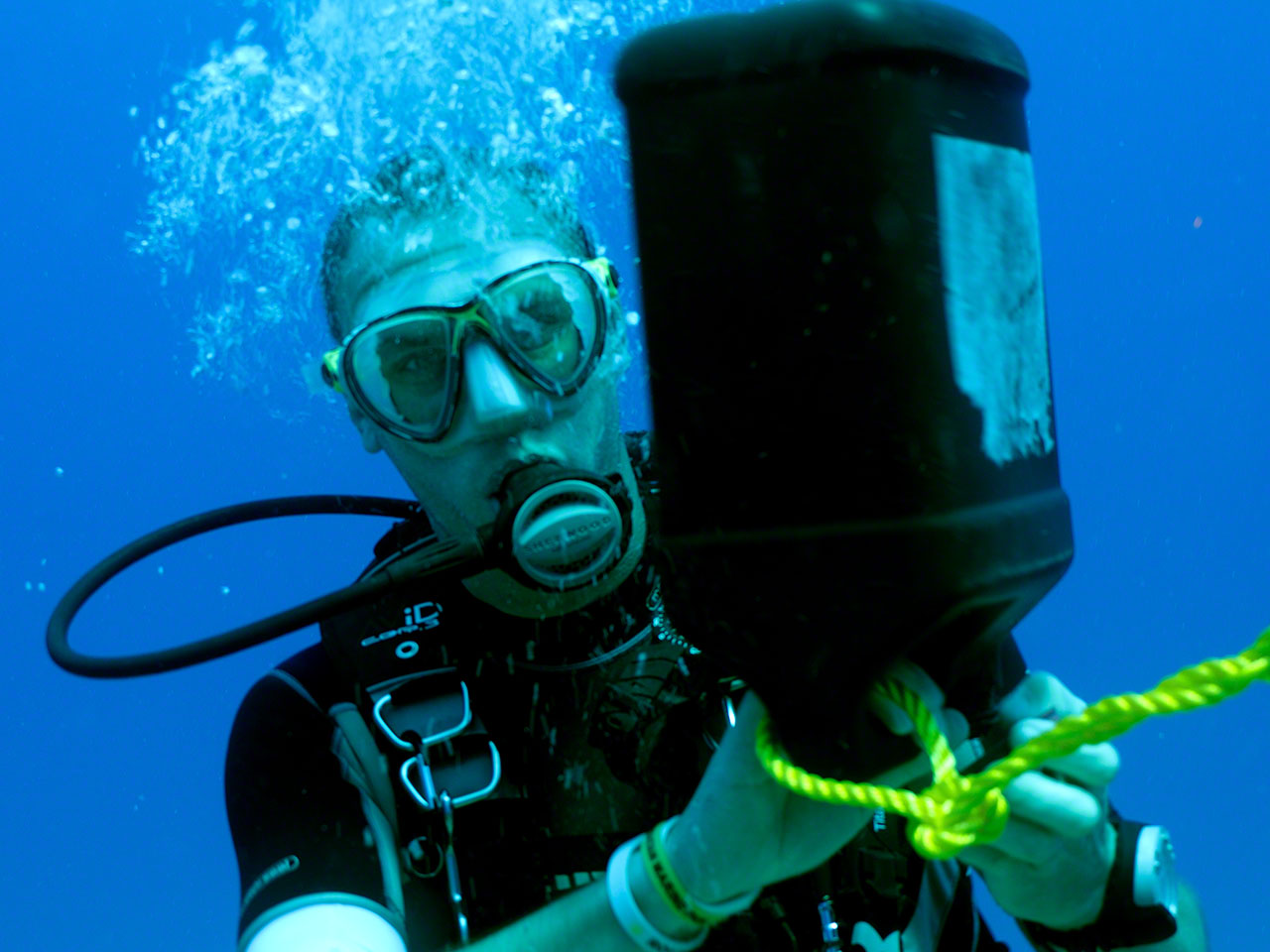 The night had been calm with no wind and little waves but the weather forecast showed that things would pick up soon. I was doing my blog reporting when I received an e-mail from Chris Davies of Octopus Diving asking if I wanted to come along or assist in putting in some “fish aggregation devices”. While I had no ide what these were, I jumped at the chance to go diving and they picked me up at the boat and we proceeded at speed to a dive spot halfway between St. Martin and Anguilla which they had marked with a small buoy.