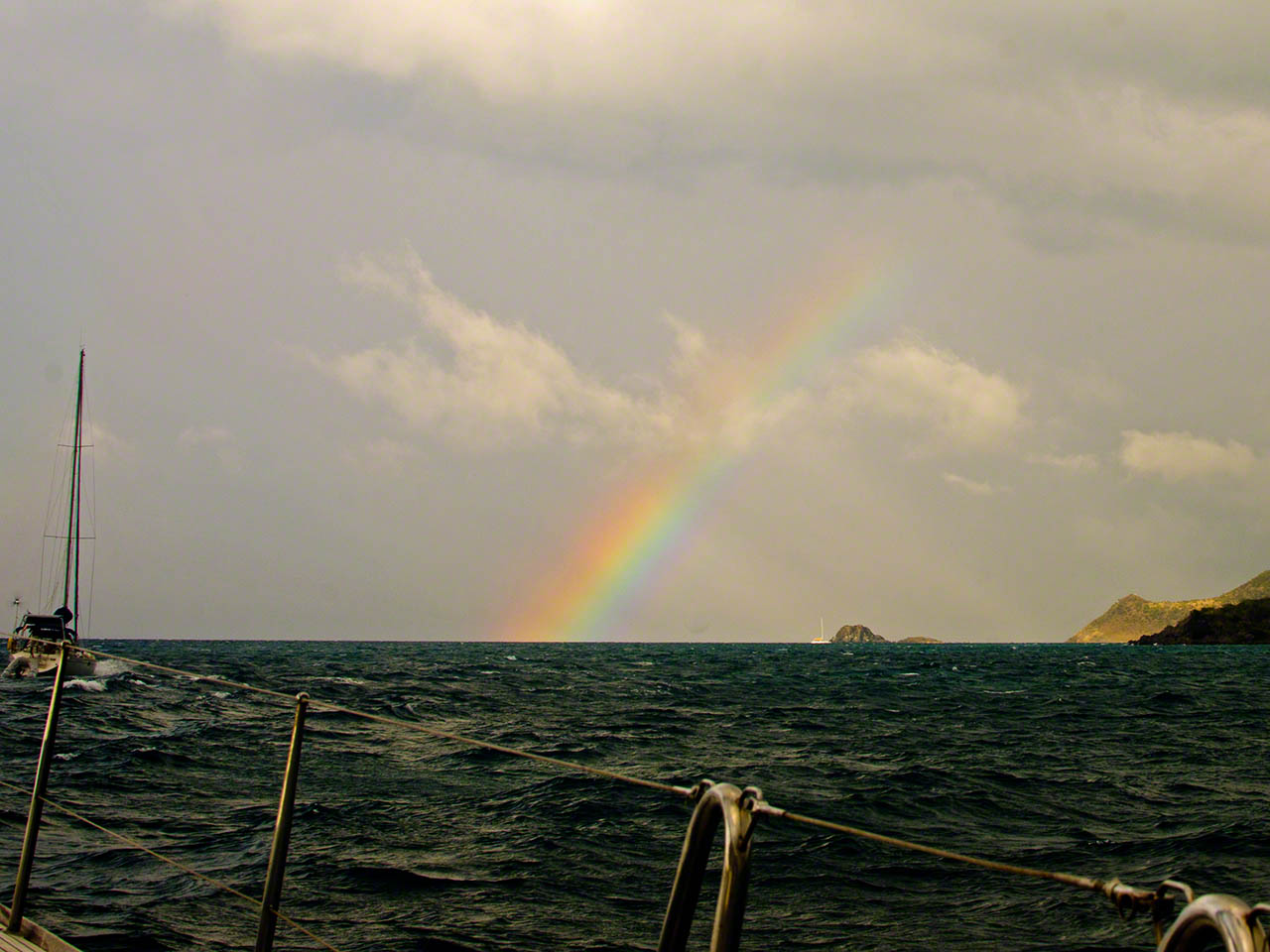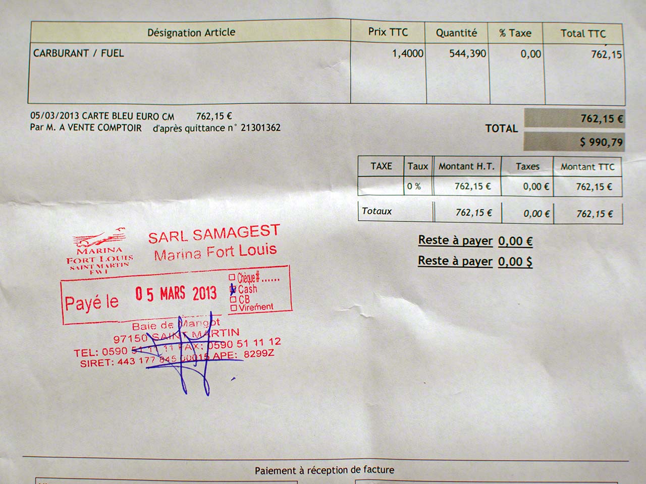 Upon return after the enjoyable dive, I found that the wind and swell combined to make staying aboard the extremely uncomfortable as the rolling motion caused the whole boat to creak and groan and anything not securely fastened to roll or move around. I’d been invited to Sally and Chris’s (and their baby Keiran) for dinner but I wasn’t going to practice trying to get seasick at anchor so I opted to prepare the boat for the fueling process. As a singlehander the key to most operations aboard is preparation, and docking the boat is the best example. I spent a good half hour getting out the fenders and attaching them to the starboard side of the boat at the right height and then pulling them inboard. Then came the bow and stern lines plus the forward and aft spring lines; all of these attached and flaked across the lifelines and secured for the trip to the dock. Once all that was done I turned on the engine, removed the black day shape signifying that I was anchored and motored the couple of miles to Marigot.
