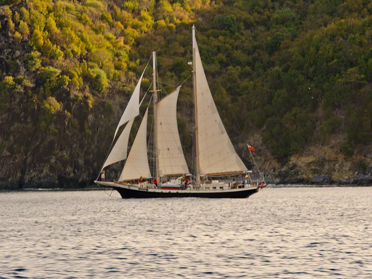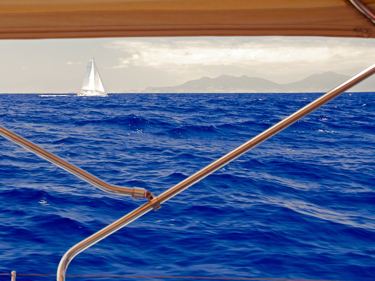 Despite earplugs I only slept fitfully, the boat rolled quite a bit but that was acceptable; there is a very annoying creaking sound somewhere in my cabin when the boat rolls which I haven’t been able to locate as it seems to come from different places but it is so loud that despite earplugs I could hear it and finally the waves bashing into the back of the boat and making it shudder was the pièce de resistance making sleep difficult. So got up at sunrise and by 07:00 was underway. I was going to see what the wind and waves were like offshore before deciding whether to make the long run to Antigua (about 90nm) or a shorter one to Nevis for an overnight stay and thence to Antigua but when I got out of the lee of St. Barths I found 10-13 knots of wind and despite the 3 meter long swell I could make a straight run for the southwest corner of Antigua with the wind at 40° apparent and about 90° true and initially in gusty winds I was doing over 8 knots; this settled a bit over the next hours but only once, for a period of about 30 minutes, did the wind die down. During this period I motorsailed in order to the charge the batteries and make some water (plus propel the boat) and until I reached the corner of Antigua I averaged around 8 knots – my fastest passage to date. After rounding the southern part of the island I had to motorsail in order to keep up enough speed so that I could enter the Falmouth anchorage with a bit of light left and my first anchoring attempt put me into the channel, the second anchoring attempt at a different location put my keel in only 2 feet of water and I didn’t have enough scope put out but my third attempt in yet another spot in the anchorage let me put out sufficient chain and left me just short of poking into the main navigation channel.