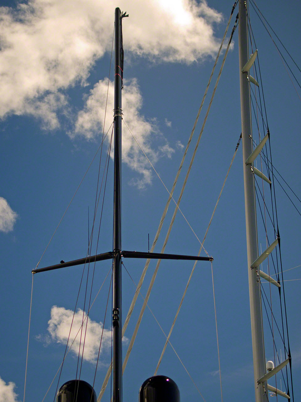 Determined to finish my project work, I started early and by the time the chandleries were open I was ready to go shopping for the missing wire and the 2-3 bolts and screws which I needed to replace as they’d either fallen overboard or headed into the abyssal depths of the bilge. The little chandlery and the Falmouth marina docks is my last choice, as it is run by a lady who is one of the most impolite shopkeepers I’ve ever encountered, so my first stop was the chandlery at the Catamaran Co. docks, where I got electrical tape, my screw/bolts but they had no wire, and the local shop that would carry 2-strand turned out to be closed on Saturdays. Then I dinghied over to a little chandlery over a gas station, but they were closed so my final stop was at the store I least wanted to go to. As I entered, the proprietress was telling someone “How should I know, I’m not a mind-reader! What do you want?” and when it was my turn at the queue I considered myself fortunate to merely get a “No.” as a response.