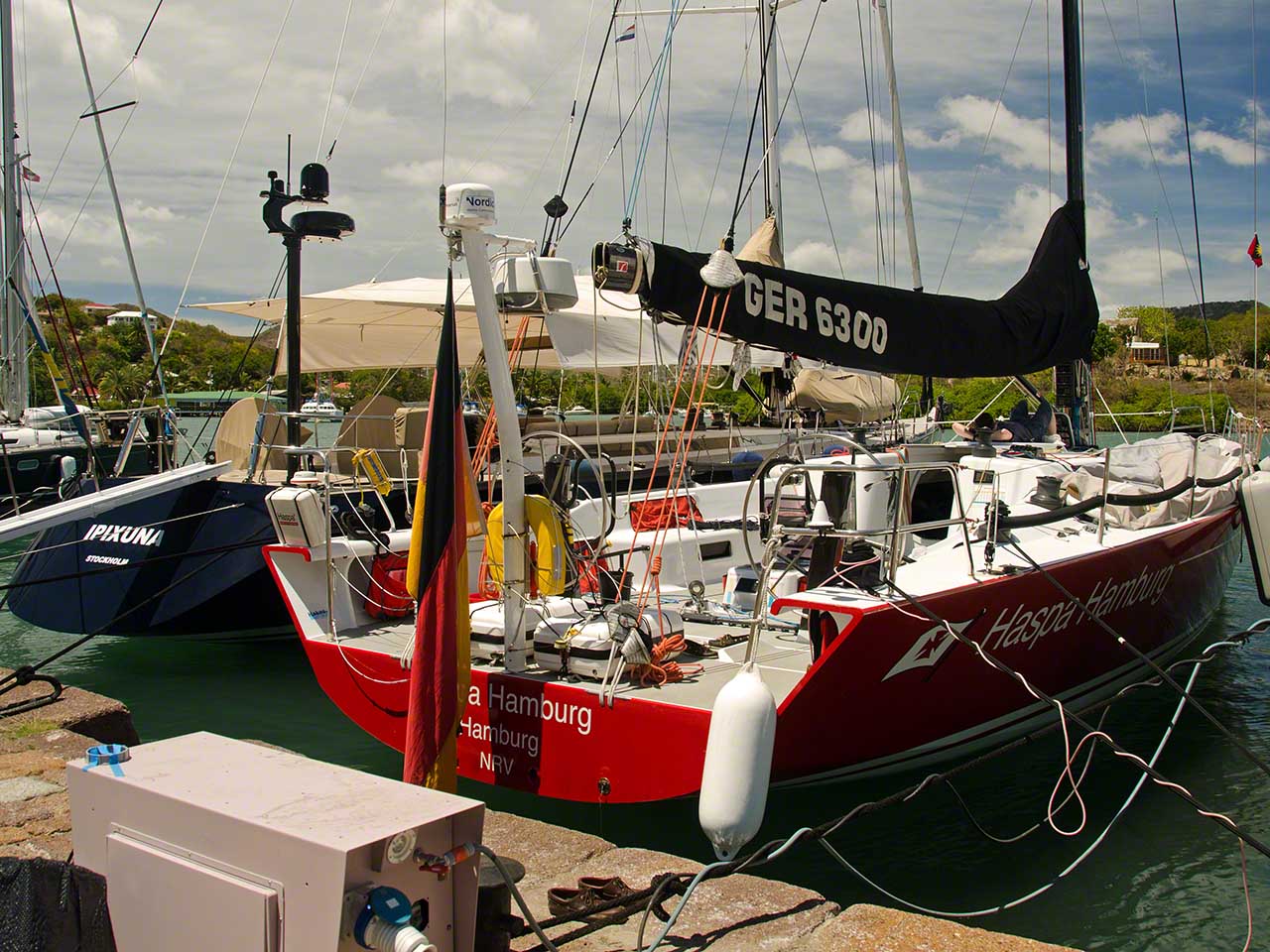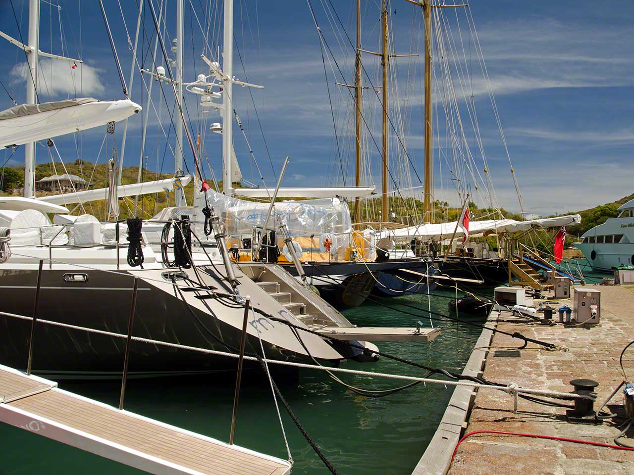 Arriving at about 17:30 I was very surprised at how crowded the event was, just as crowded as the last time I’d been there for the Antigua Race Week party! The first band was the percussion band playing their oil-barrel drums and they had a pretty wide repertory ranging from U2 “Where the Streets have no Name” to more traditional Reggae music. After that band finished a modern rock band took to the next stage and party proceeded. By this time it was somewhere between 9 and 10PM and we’d all had our share of libations and food; I got to take a peek at “Peter von Danzig” and despite the yacht being just about the same size as mine it felt a lot bigger and much more solid inside. I’ve never seen a sailboat with so many winches on deck (I believe it was 6 or 7 – per side!).