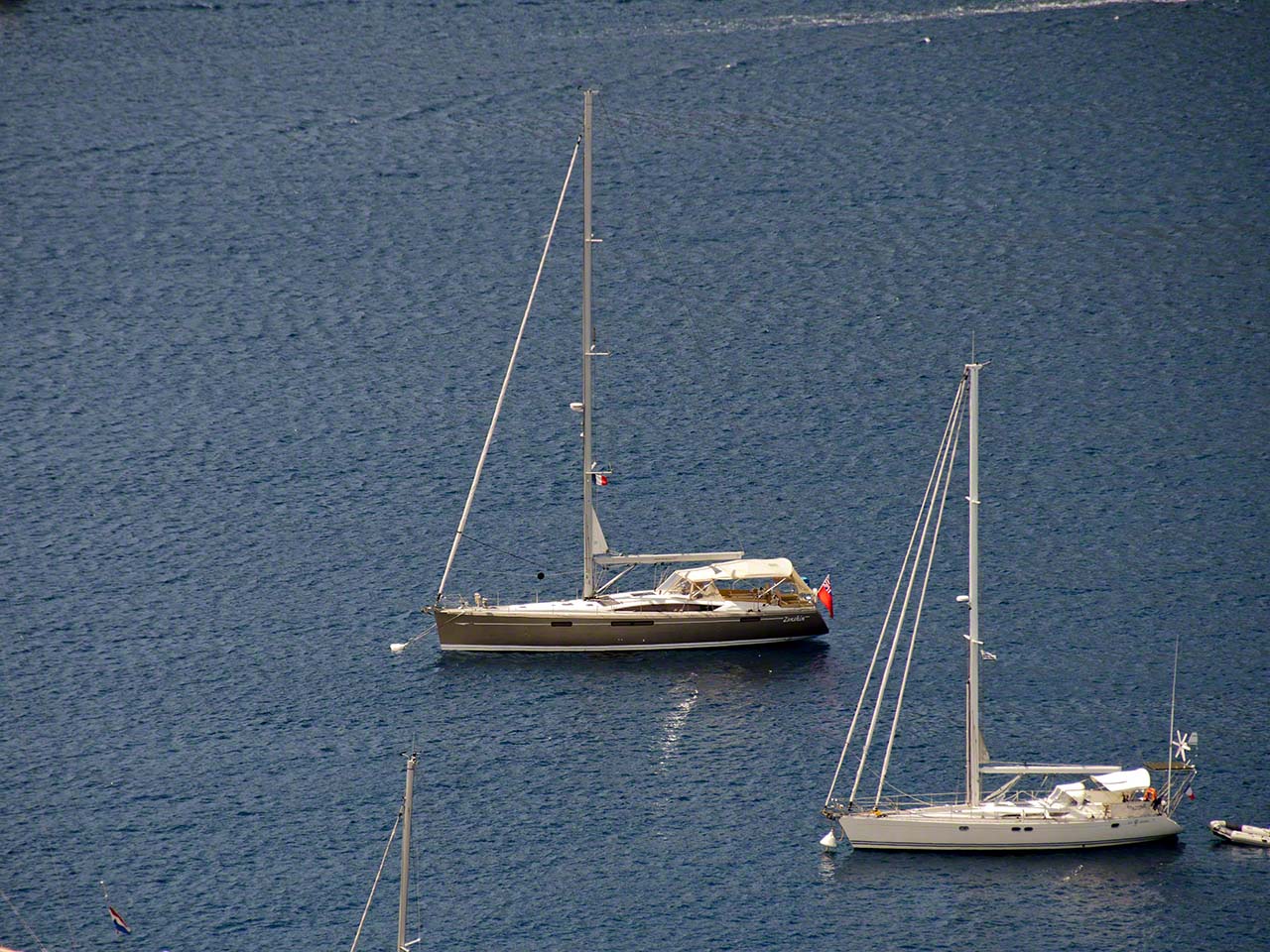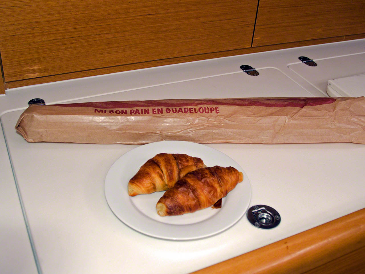 It rained during much of the night, and in the morning the rainy atmosphere was slow to dissipate. But the day began on an absolute high note; just past seven a dinghy came by with my delivery of 2 croissants and a baguette, still warm from the bakery! Drinking a fine coffee with fresh food for breakfast without having to leave the boat is a true luxury indeed!