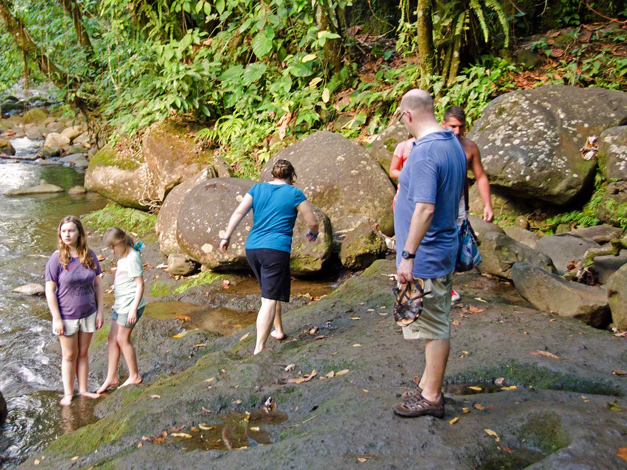 After the forest walk we took a look at one of the pools and waterfalls, Silvia in particular took a closer look than she wanted and ended up going swimming instead – with no change of clothes aboard the car that was no fun for her at all; she got a shirt from her father and changed once we were back aboard the boat.
