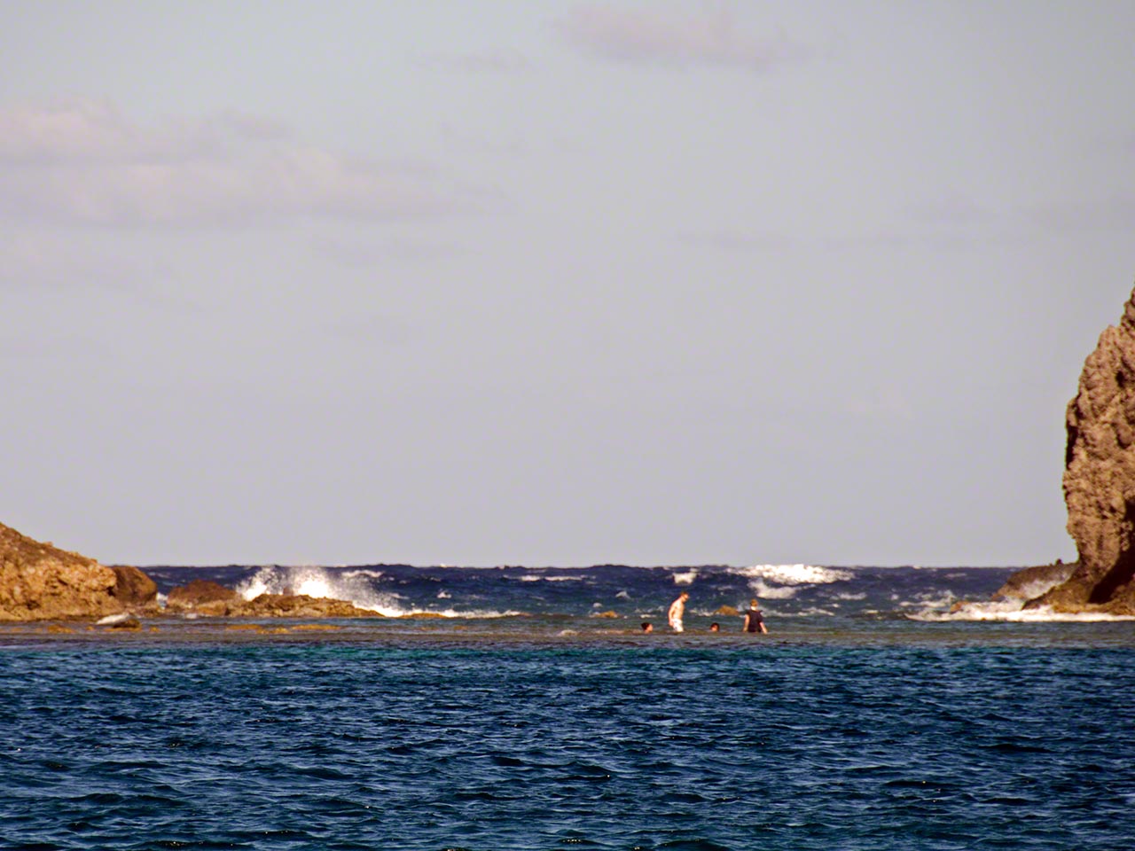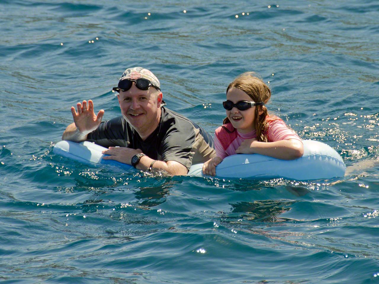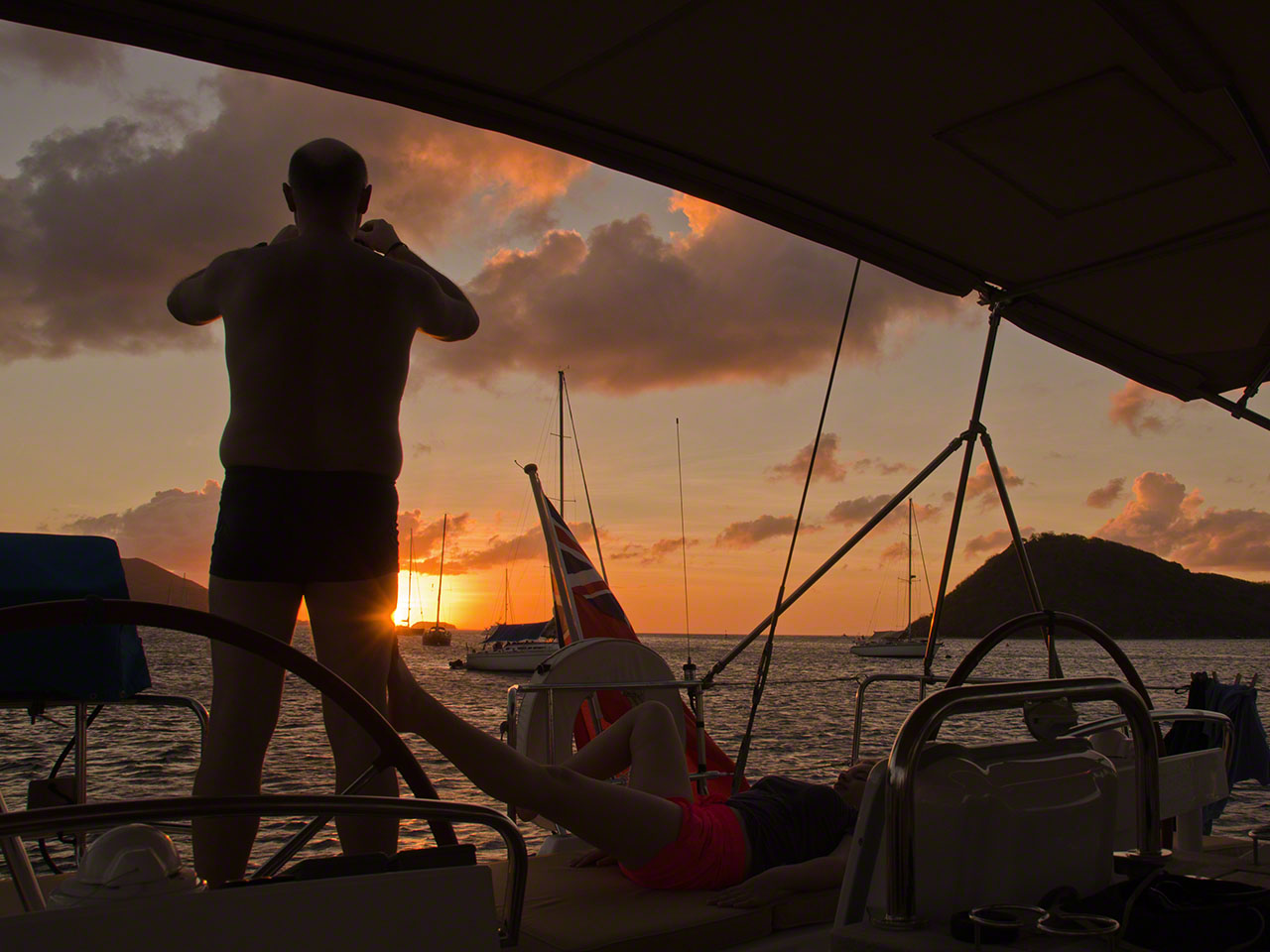 After finding one of the only 2 free mooring balls and settling down we got a great dolphin show with 2 dolphins circling around our area for a while. By the time Wolfgang and then Sophia got on their floatie to see if the dolphins were in any way curious they’d had enough of humans and boats and disappeared; but the show had been fun to watch while it lasted.