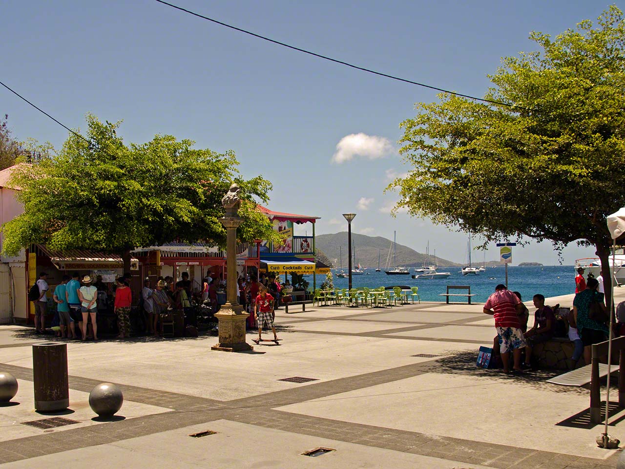 The night was rolly and uncomfortable at anchor, but just borderline. The waves wrapped around the headland and slapped into the back of the boat but at 3AM I put in some earplugs to ameliorate the issues yet my guests didn’t do quite as well so all of us were a bit tired at breakfast. To make everything worse I’d checked the weather and the forecast was for 25+ knots of wind and 2.6m swell for the passage to Dominica, and since the wind funnels between the Saintes and either Guadeloupe to the north or Dominica to the south I thought it advisable to postpone the passage for a day and both parents concurred – but the kids didn’t adjust so well to the revised schedule. Their arguments were convincing, include some tears and “But you promised…” yet in the end the grown-ups prevailed and the girls got to do some shopping instead while Wolfgang and I were taken along for the ride and for Wolfgang’s credit card.
