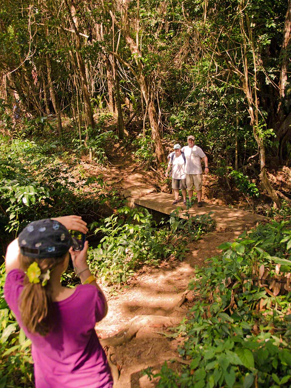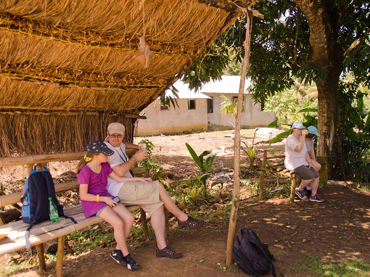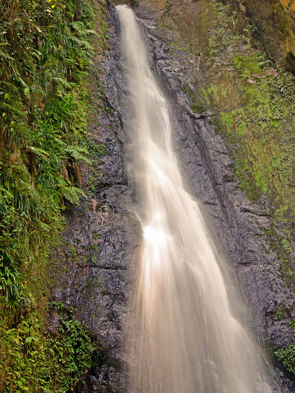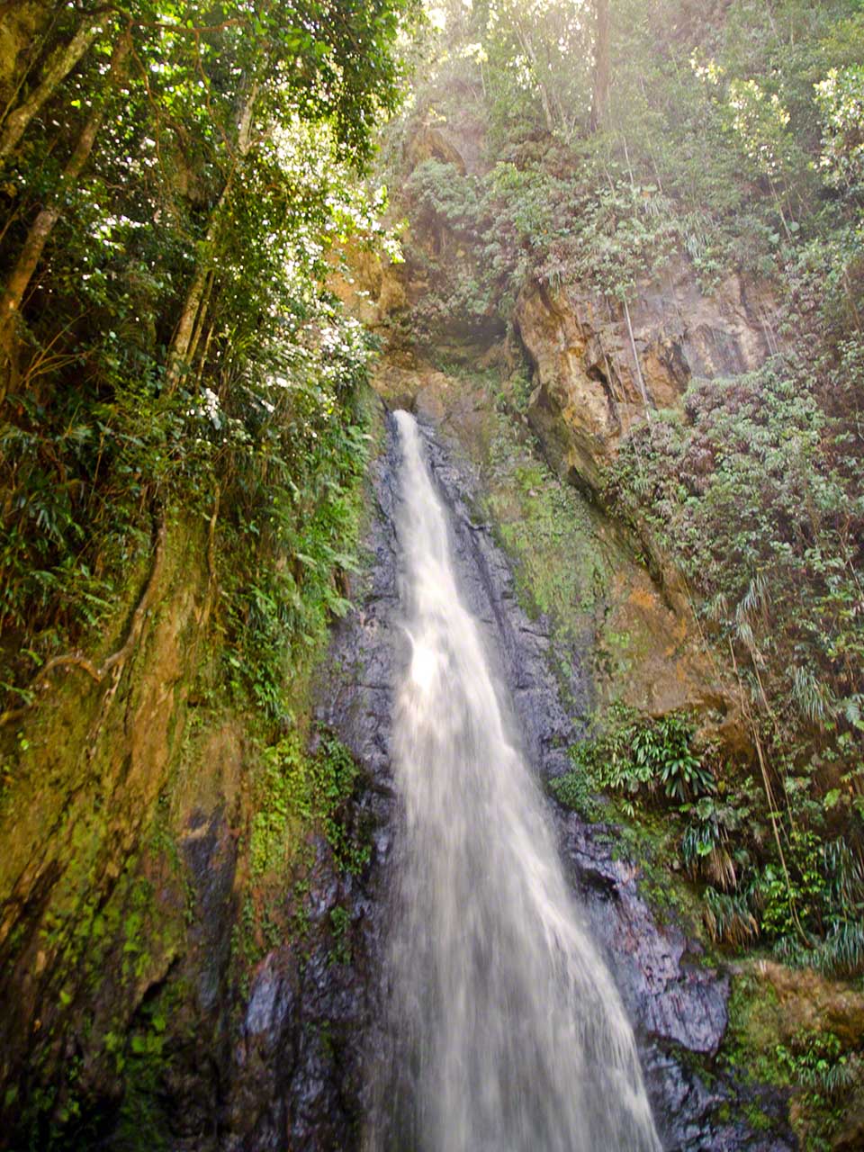At the end of the trail we had a short respite and drank fresh juice at a stand while waiting for our next tour guide, Max. He arrived in a minibus and soon we were off, heading towards the higher and moister levels of the jungle. Our destination was the Syndicate farms and the Syndicate Falls above them. Once again we were treated to detailed explanations of many plants and crops on the way, with a sprinkling of island geography and history mixed in.