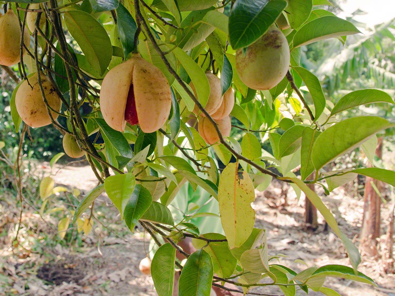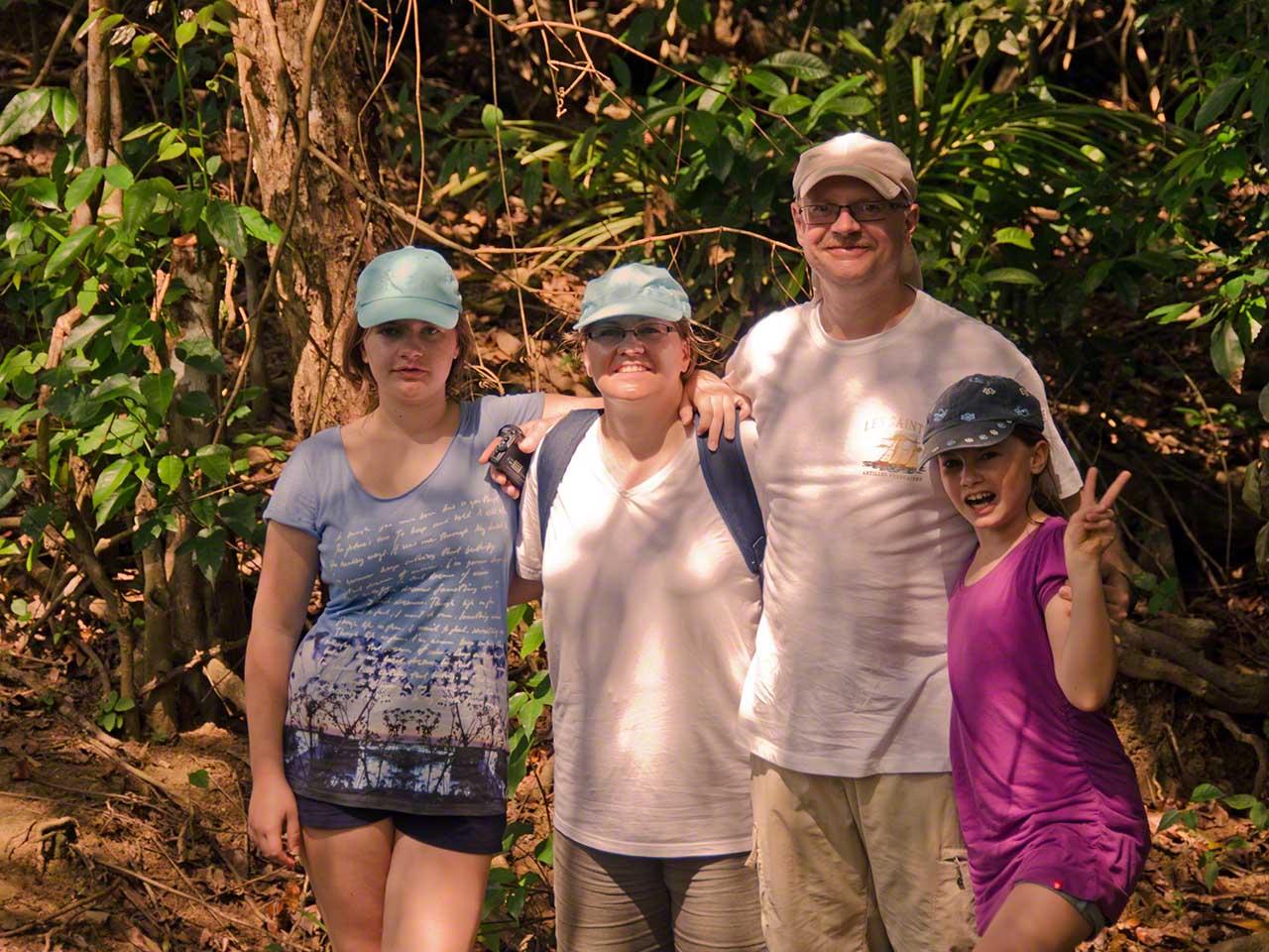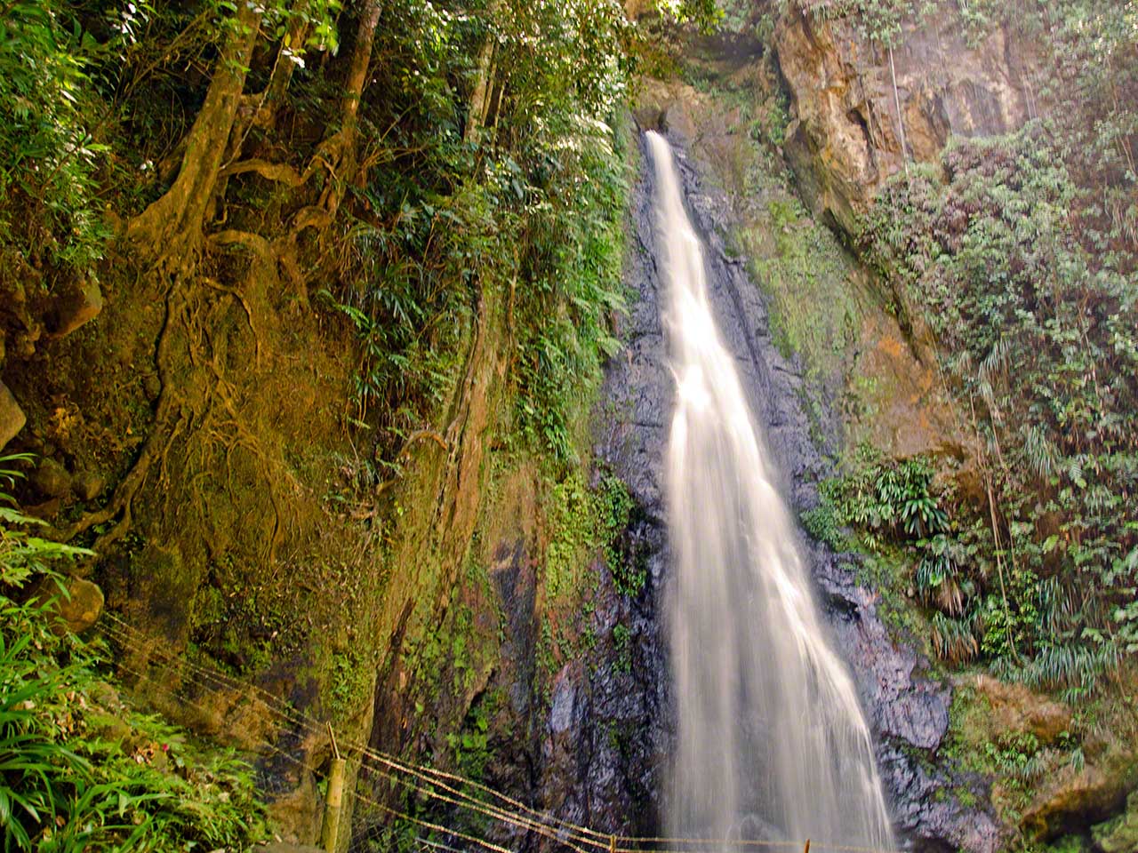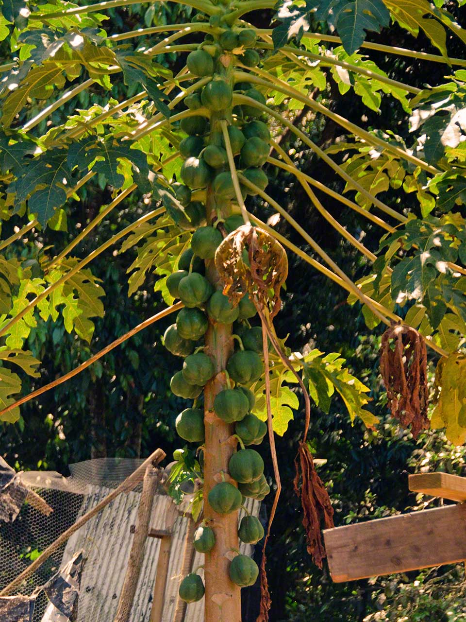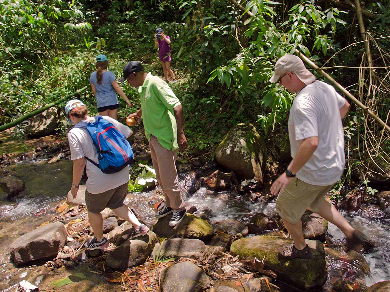 At the end of the trail we had a short respite and drank fresh juice at a stand while waiting for our next tour guide, Max. He arrived in a minibus and soon we were off, heading towards the higher and moister levels of the jungle. Our destination was the Syndicate farms and the Syndicate Falls above them. Once again we were treated to detailed explanations of many plants and crops on the way, with a sprinkling of island geography and history mixed in.
