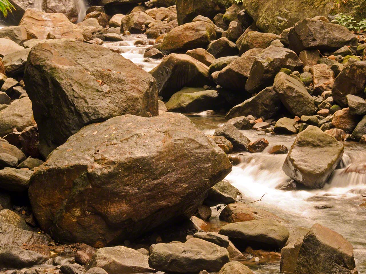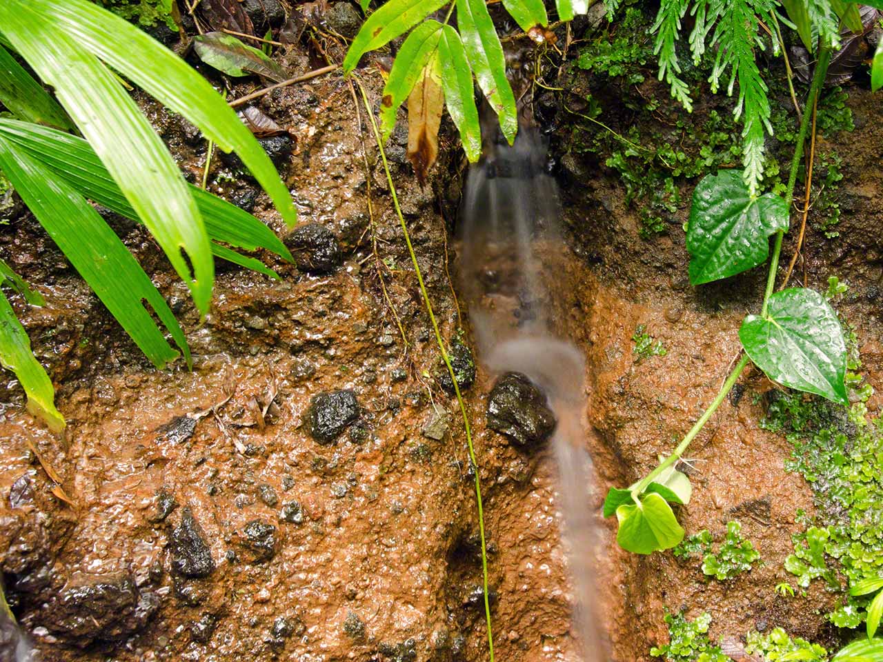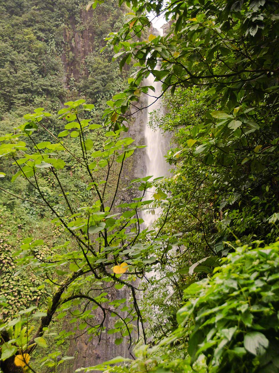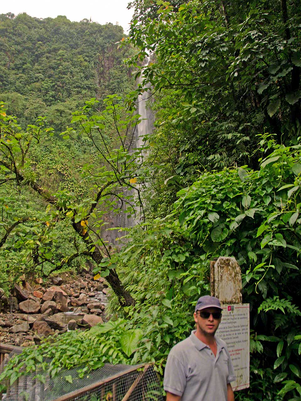 Since all the stores were closed and I still had the car, today was going to be tourist day and I had spoken with Bjorn, the skipper of Susanne af Stockholm whose crew were off doing other things that day and he, too, wanted to see the upper rainforest and waterfalls.  The day didn’t begin well with lots of rain constantly coming over the marine, but shortly before noon a window seemed to open up and we got into the car and headed towards the Carbet Falls in the national park. We were fortunate that the rains hadn’t hit that part, since the paths would have been inaccessible or closed had that happened and the constant cloud cover there opened up a bit to let us do our tour. The Carbet Falls consist of a set of 3 falls, the first (highest) was going to be a 3-4 hour hike, the second set is closed due to a landslide after an earthquake several years ago and the third waterfall is also closed for the same reason, but one can take the path to a destroyed suspension bridge and see the cataracts from there. This 20-minute walk wasn’t enough for us, so we took a “M”oyen (medium) difficult path to some destination 40 minutes away. The path got harder and harder as we climbed and our footwear wasn’t up to the task (Bjorn had boat shoes and I had sandals) but we doggedly kept on climbing, with the general idea of “we’ve gone this far so we shouldn’t turn back until we’ve accomplished something”. After an hour of climbing the trail I was tired and my shirt was soaked and I was regretting having my backpack full of lenses and camera gear and the tripod I was hauling around was getting very, very heavy. We encountered a sole hiker who told us that we were still a ways from the destination on the chart (which wasn’t anything special, just a hut to camp in should one get stuck in the mountains) but he said if continued just 5 minutes that we get to a break in the canopy where we could look down at the 3rd set of falls.