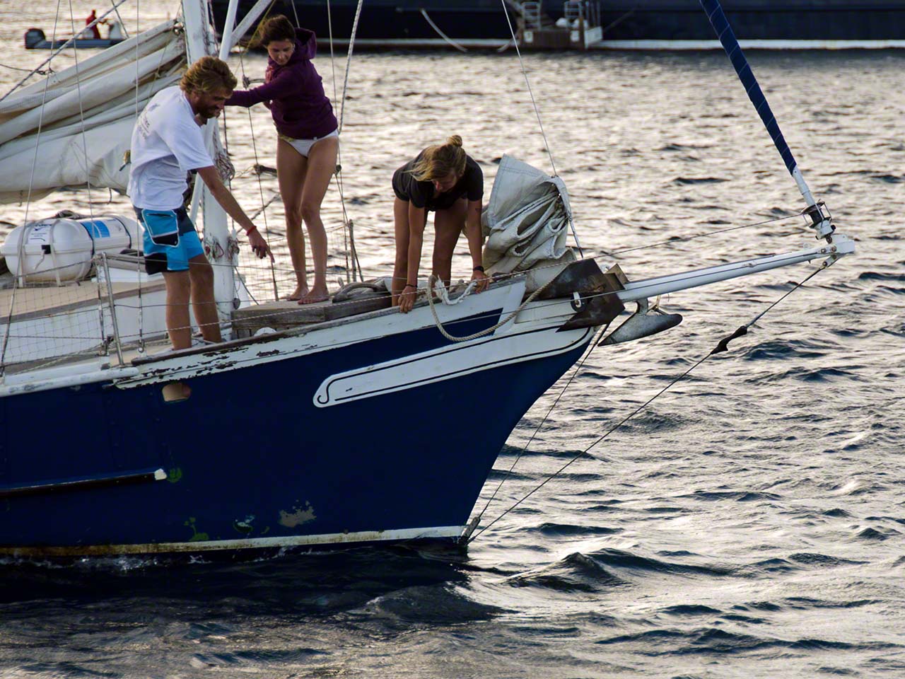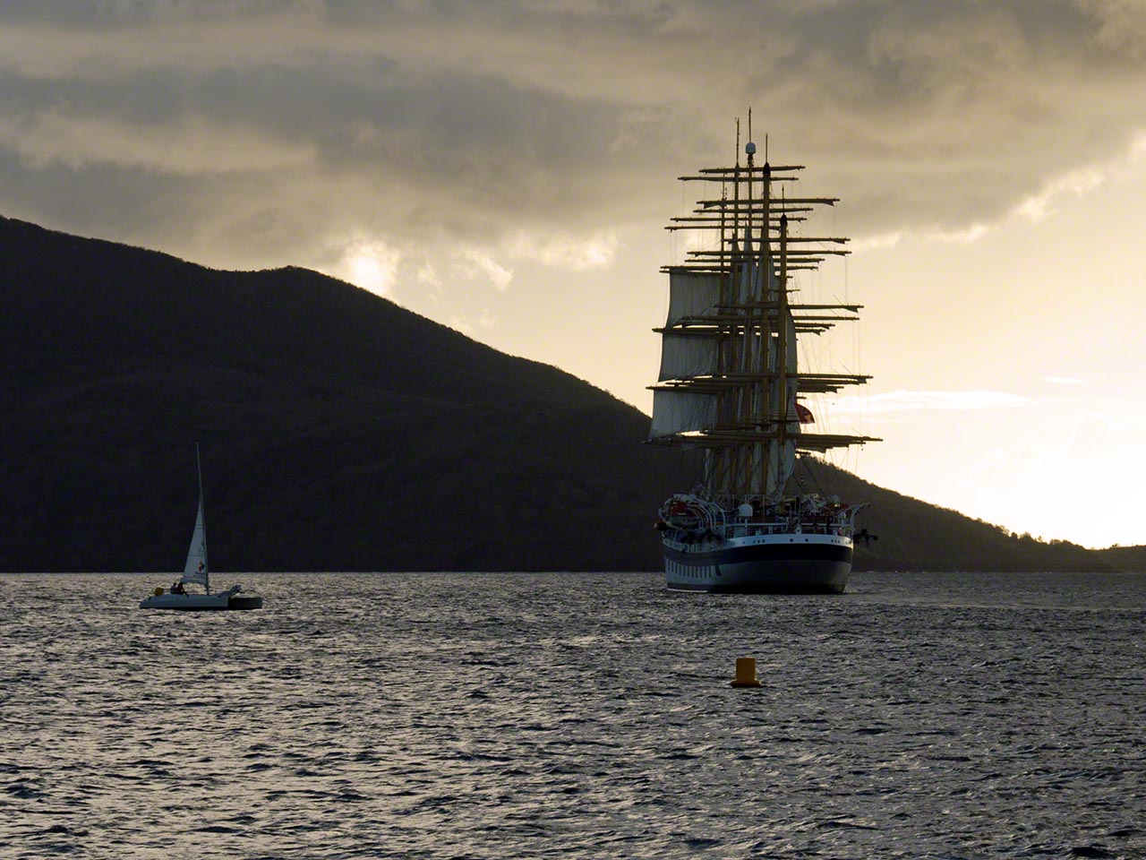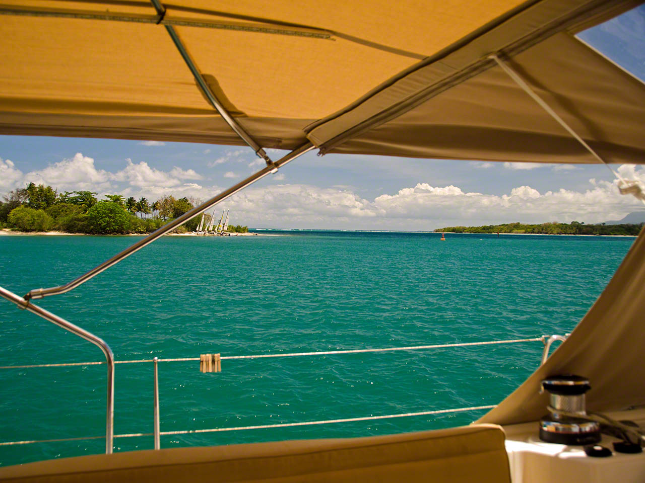 Finally managed to cut the virtual umbilical cord to the dock (and unplug the actual power line, water hose, and dock lines) and make it away from the marina. I got an early start but somehow didn’t manage to get away until noon, so instead of sailing straight to Dominica I sailed halfway there, to the Îles des Saintes. The winds started off by howling but the reefs I had in the sails soon turned out to be a bit conservative but I kept them in anyway, as I was in no hurry and even passed the only other boat on the same stretch, a small ketch.